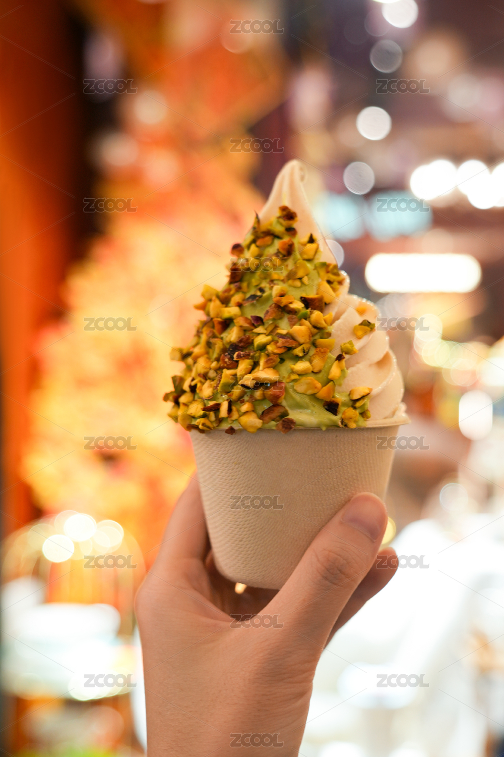 手捧开心果碎豆腐冰淇淋