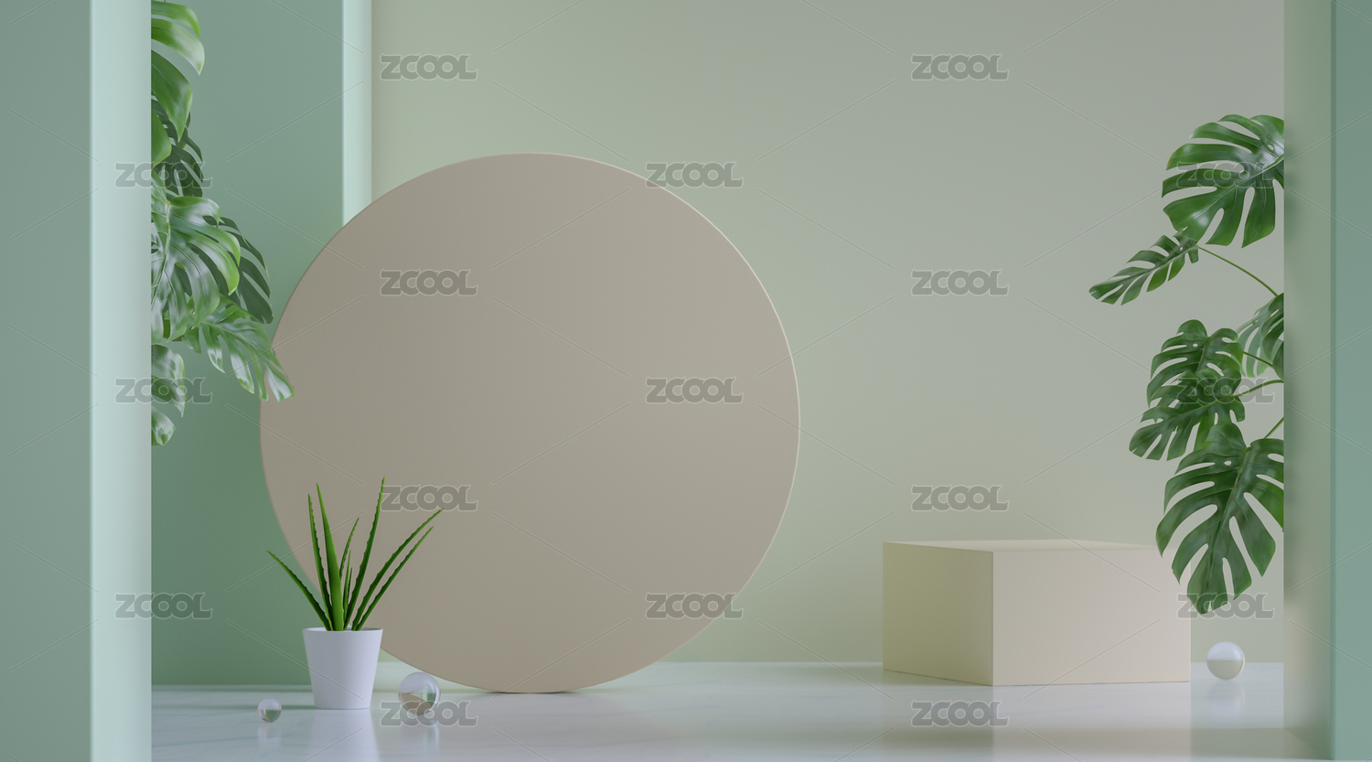 淡绿色自然虚拟静物几何3d背景