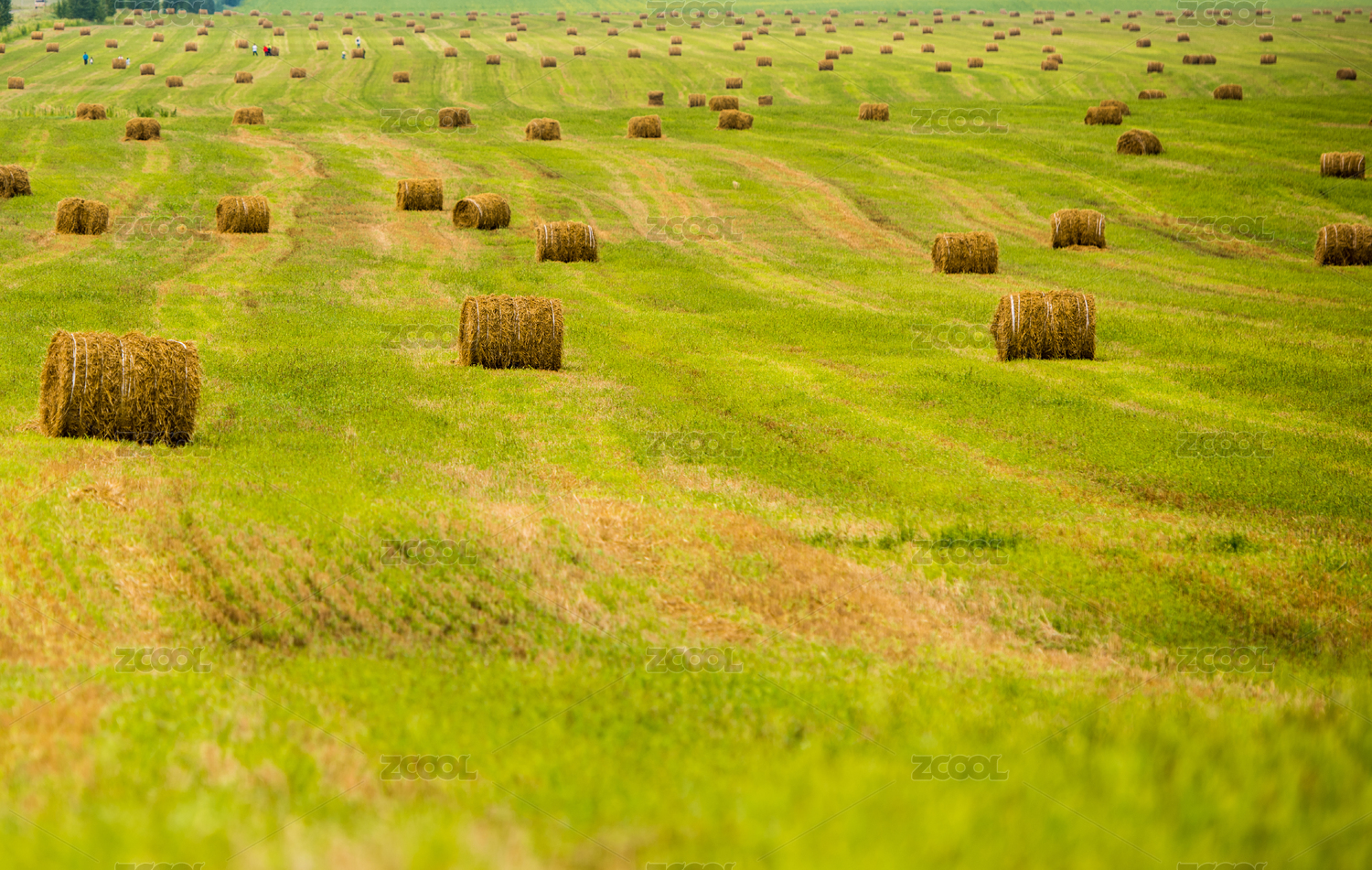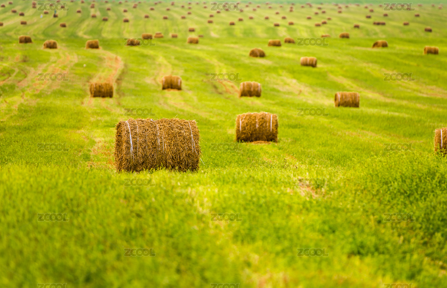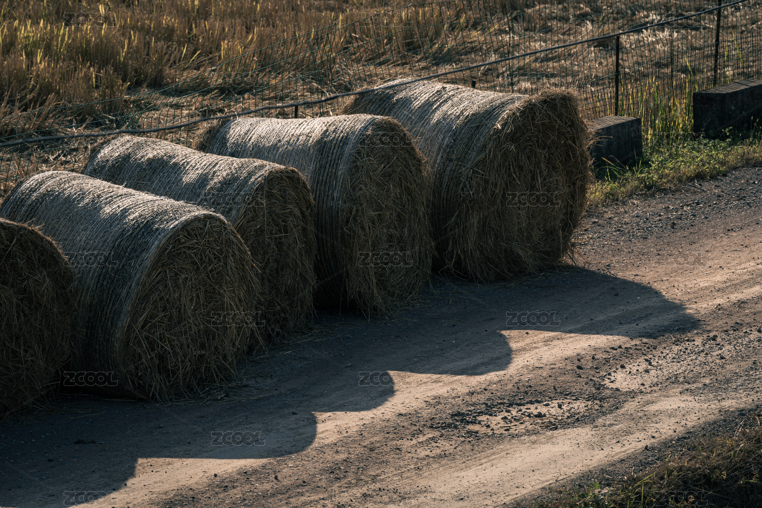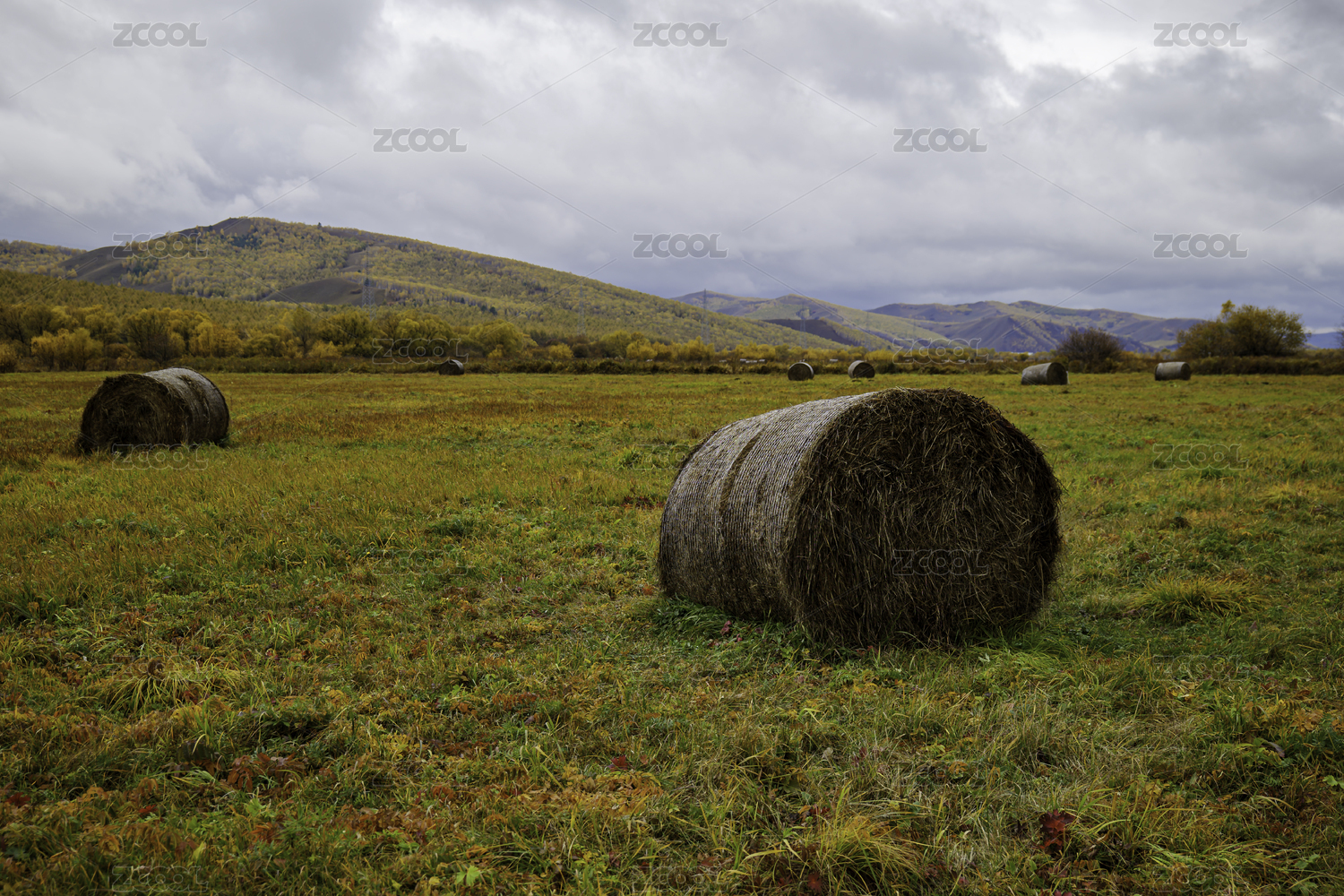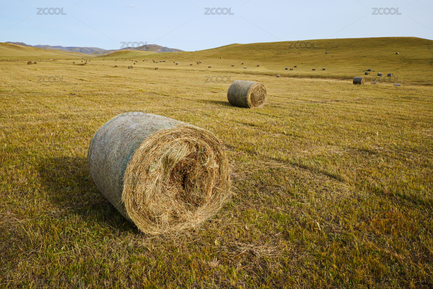内蒙古兴安盟秋天金色牧场的干草垛风景