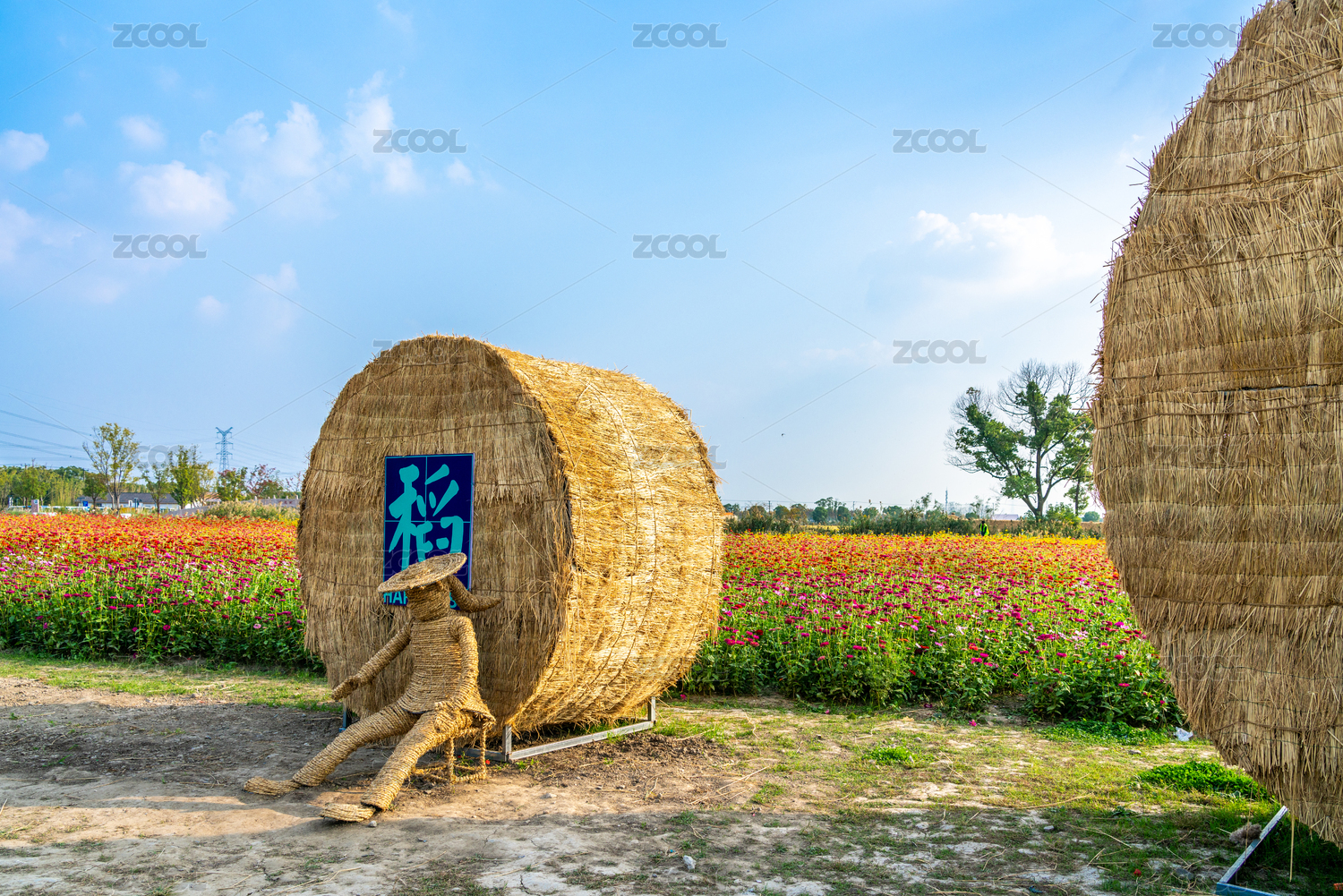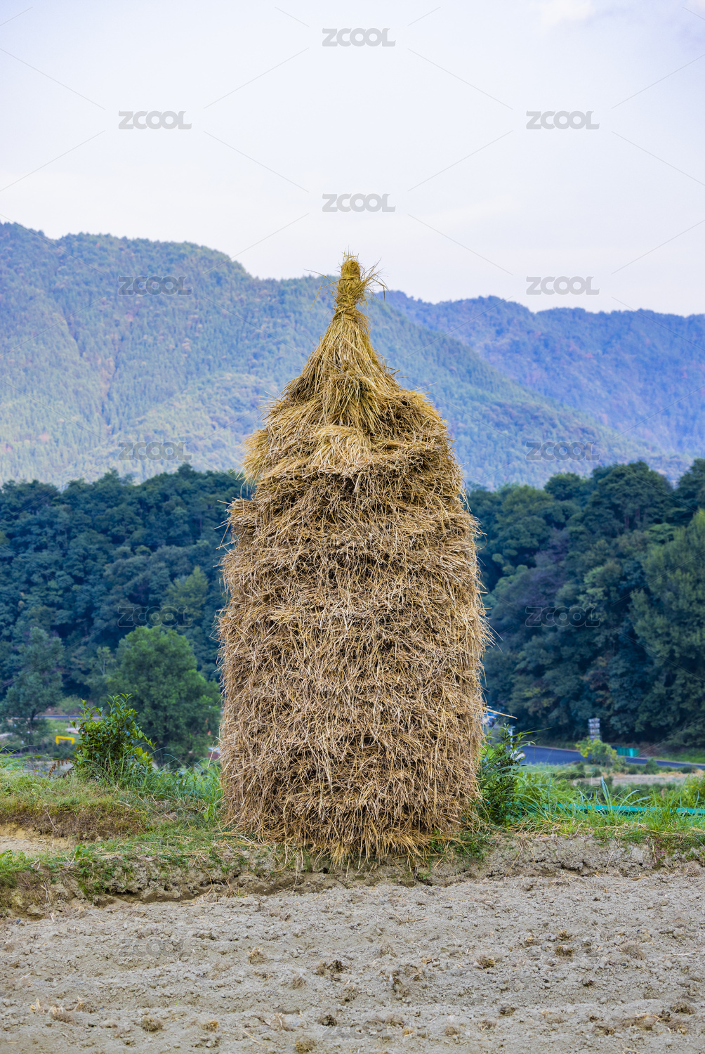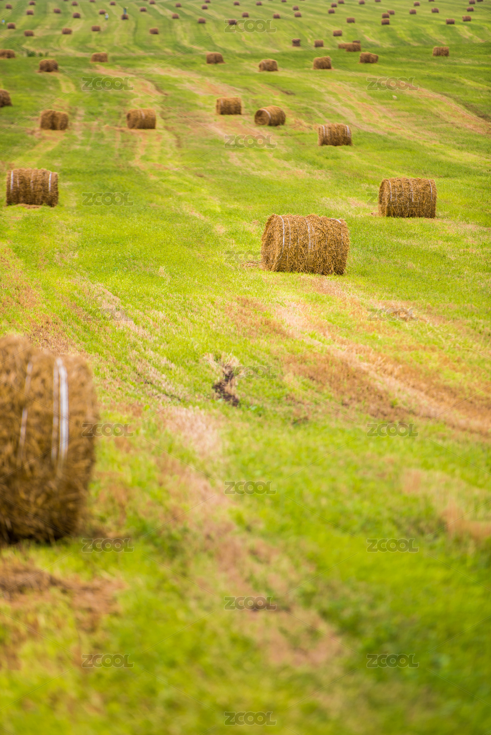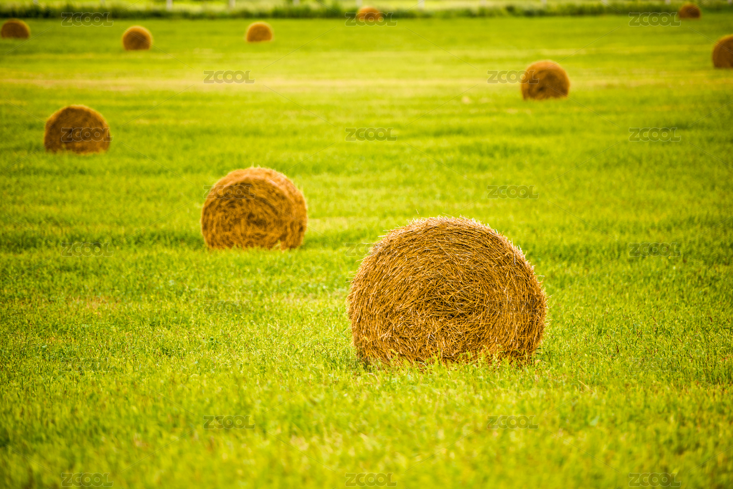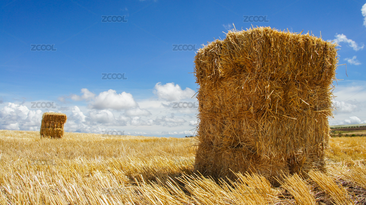 内蒙古兴安盟秋天金色牧场的干草垛风景