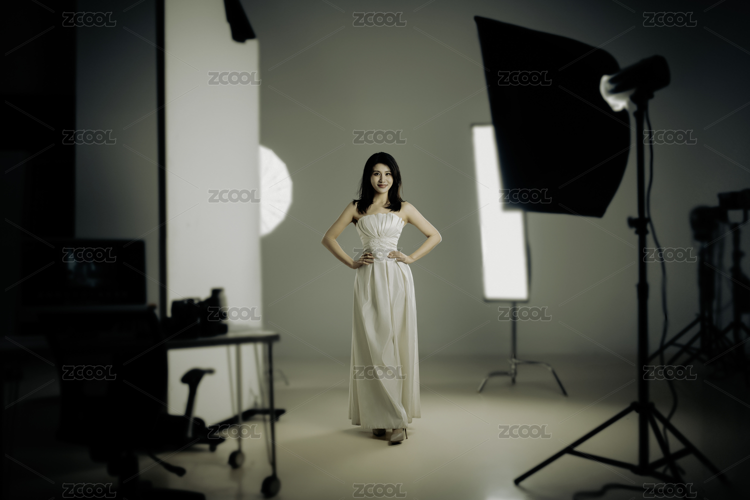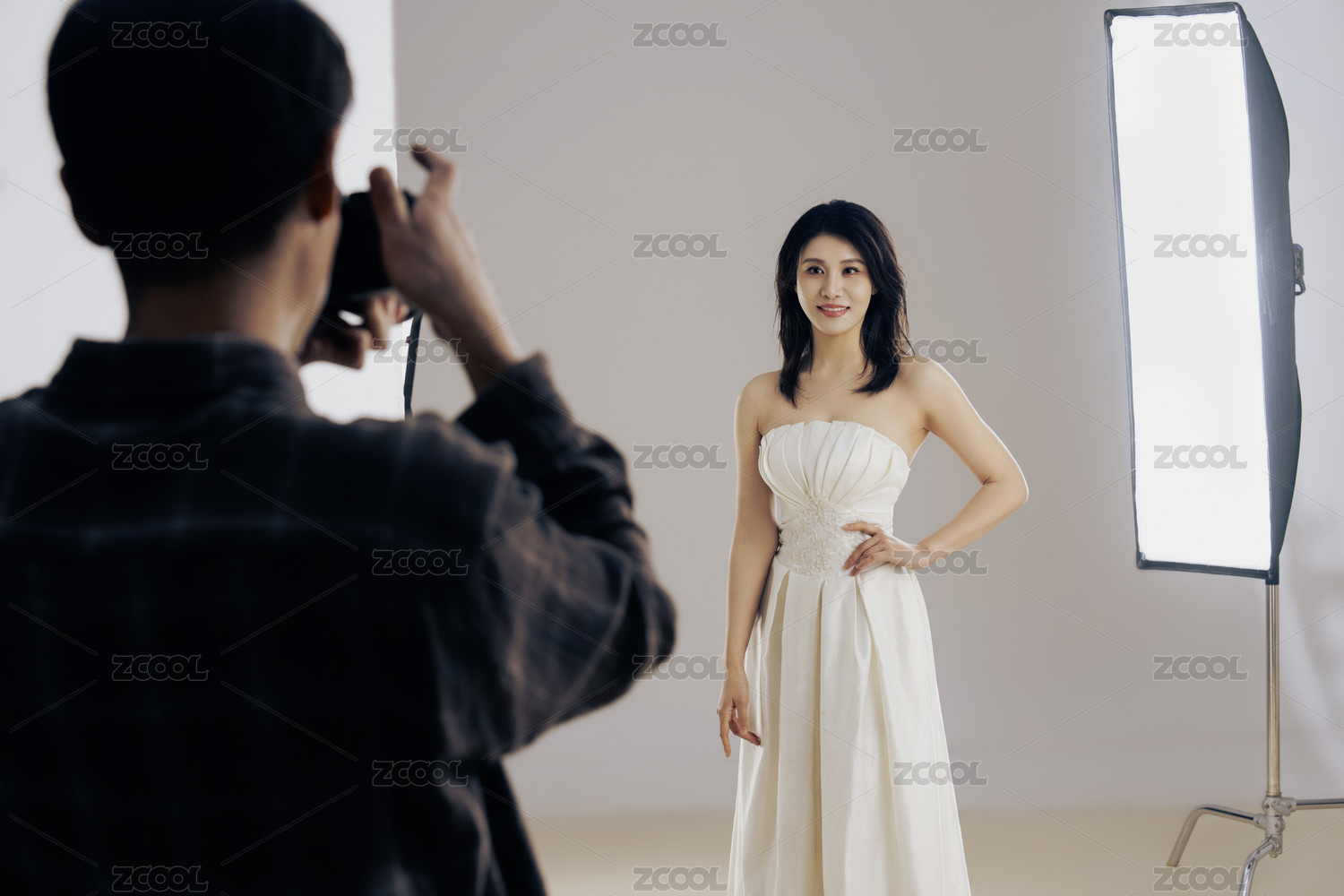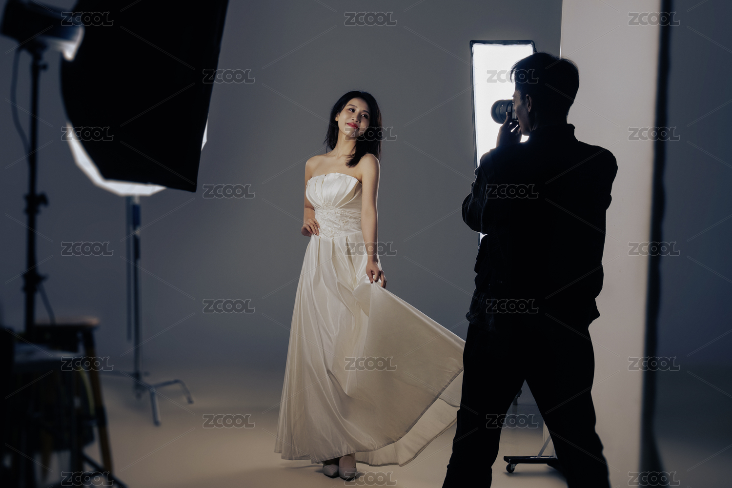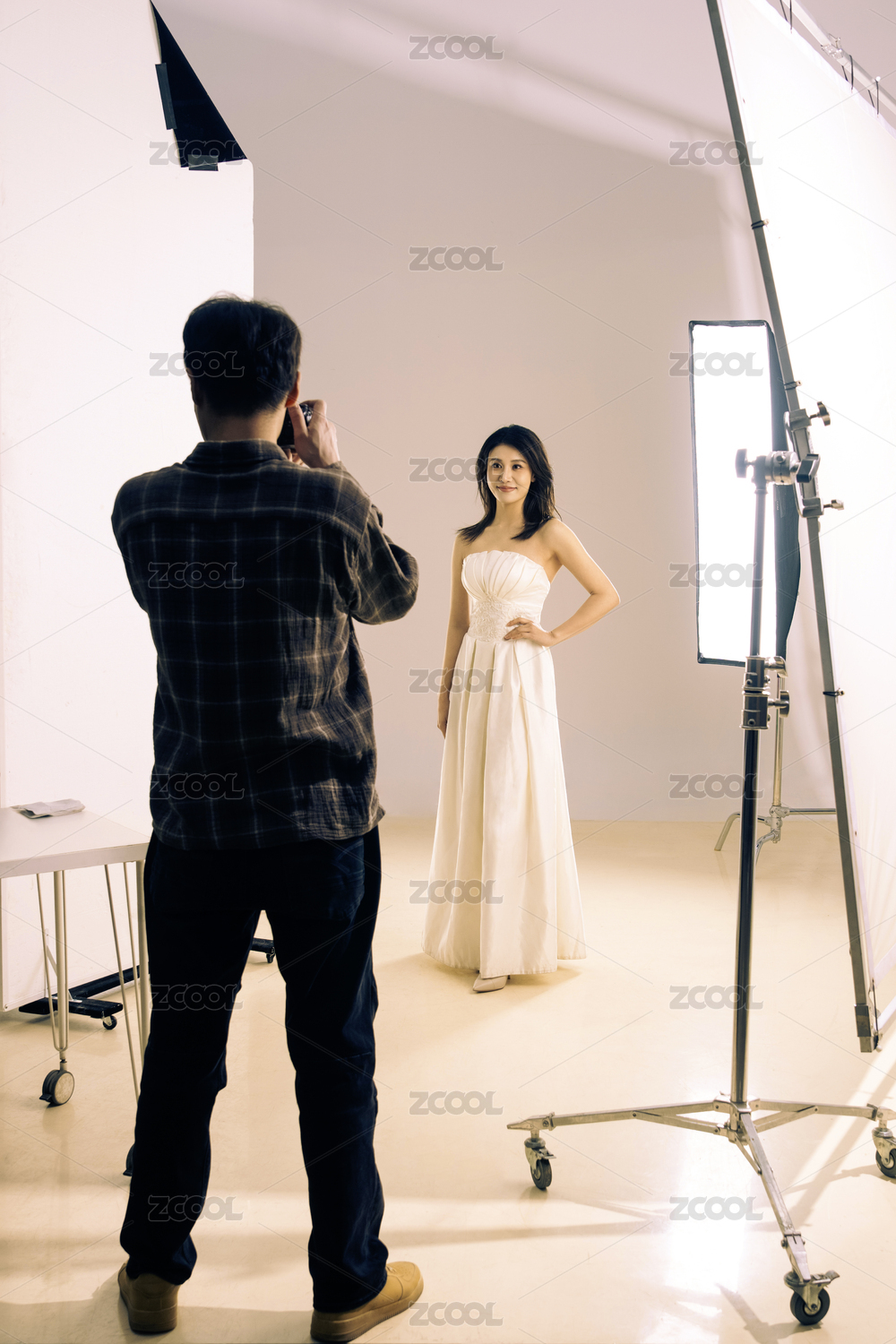 摄影工作室,摄影棚内的工作场景,前景是手机在记录工作场景