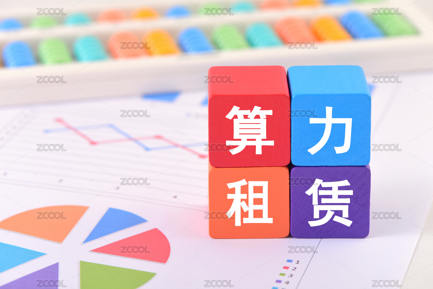 金融办公用品上放着文字积木算力租赁