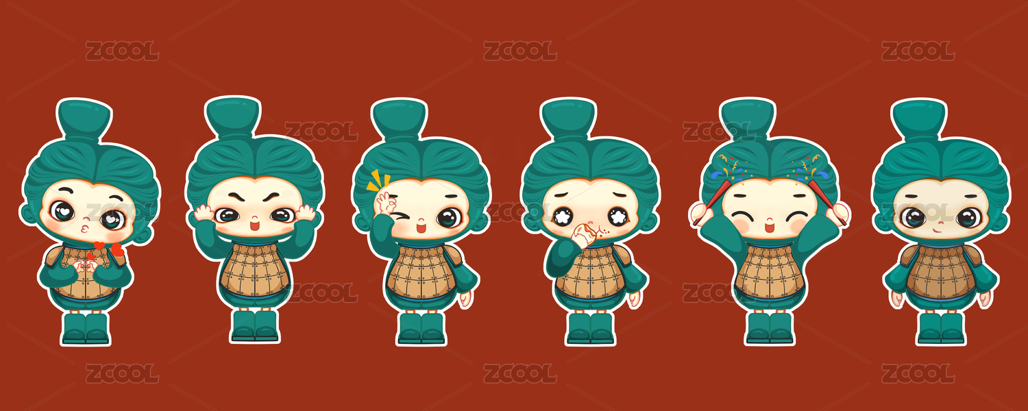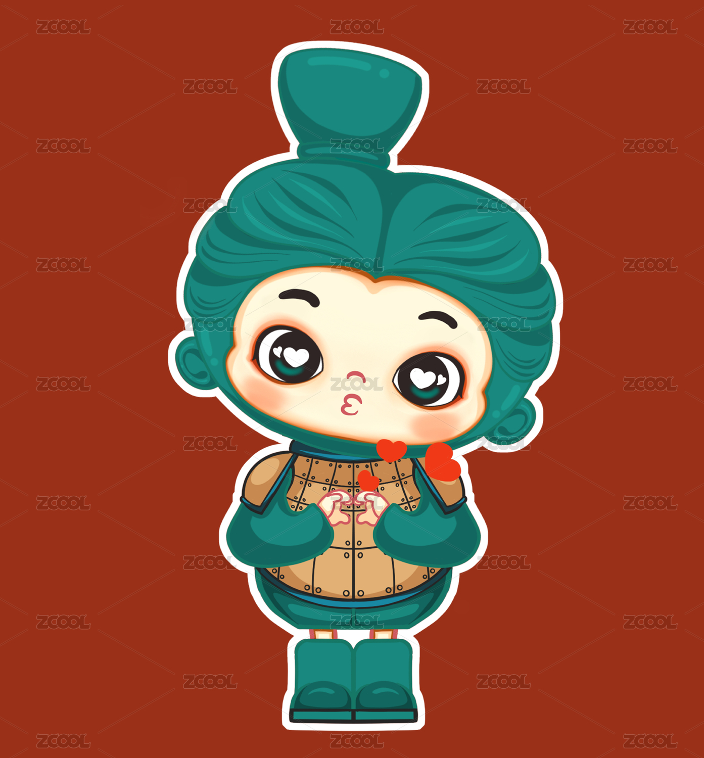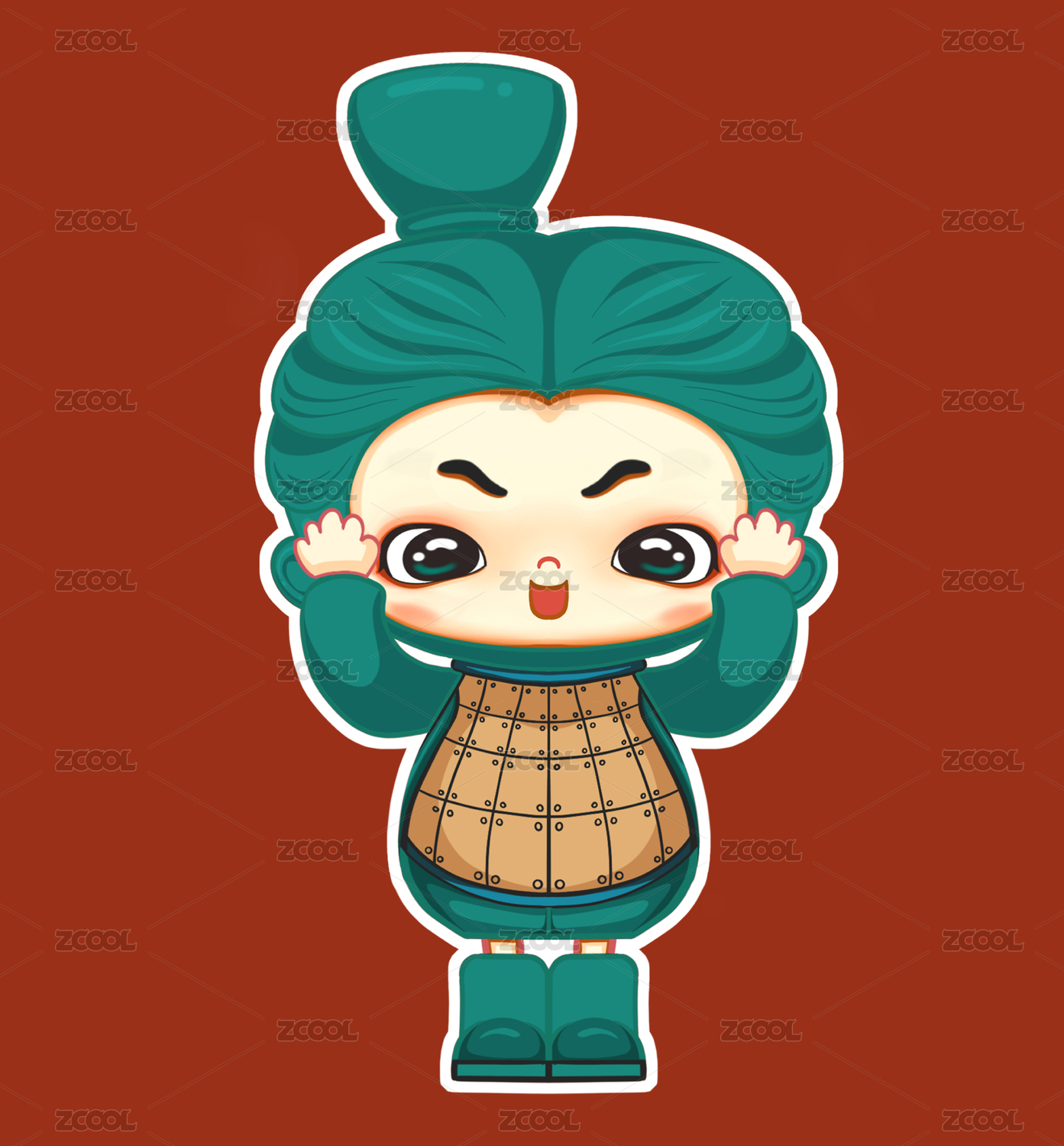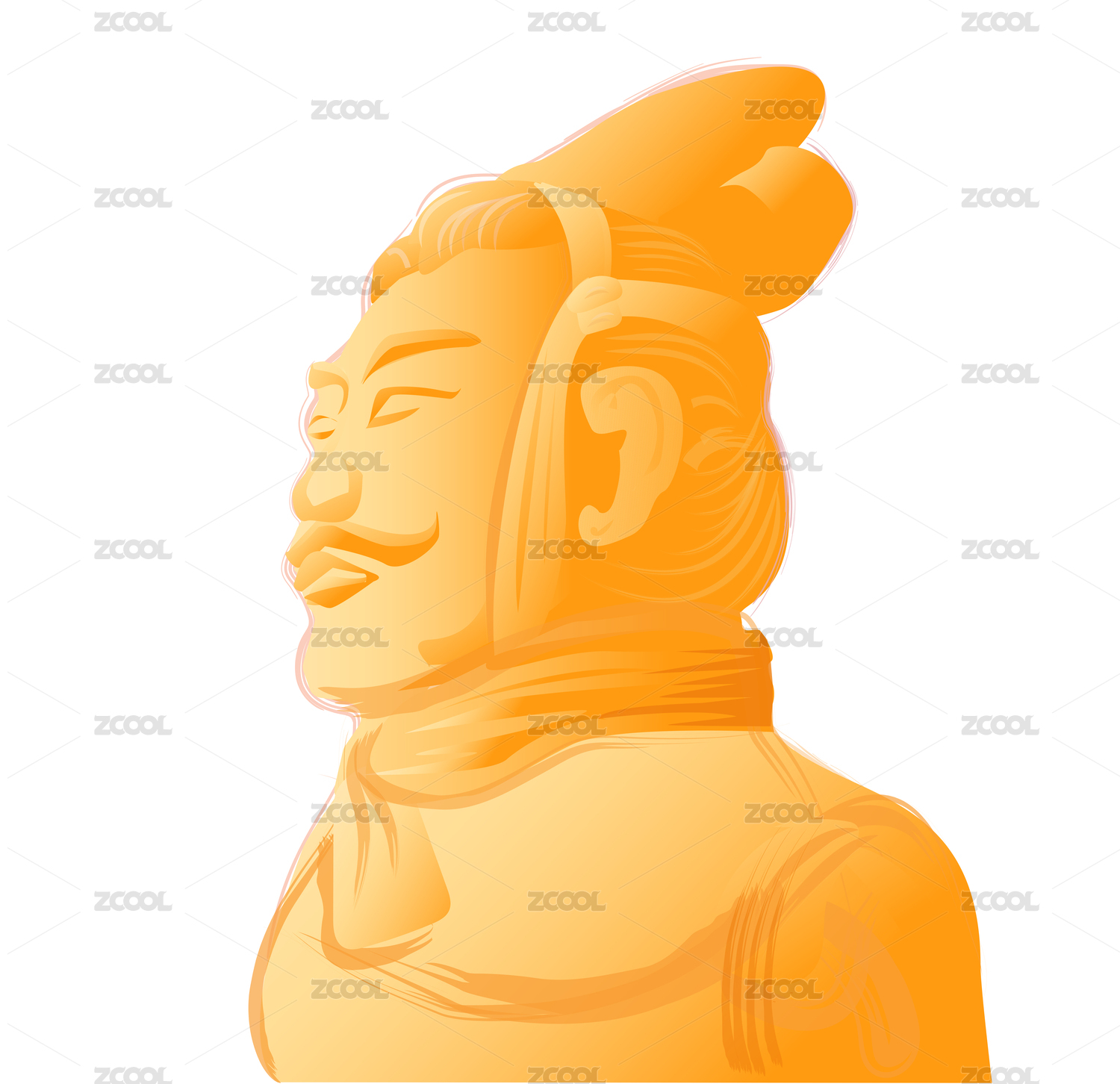 陕西西安彩色兵马俑跪射俑人物形象插画
