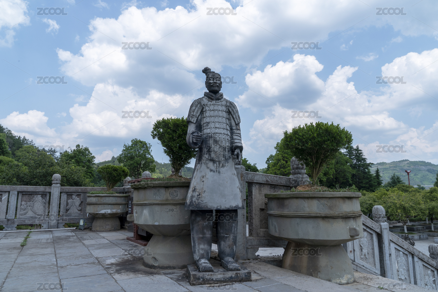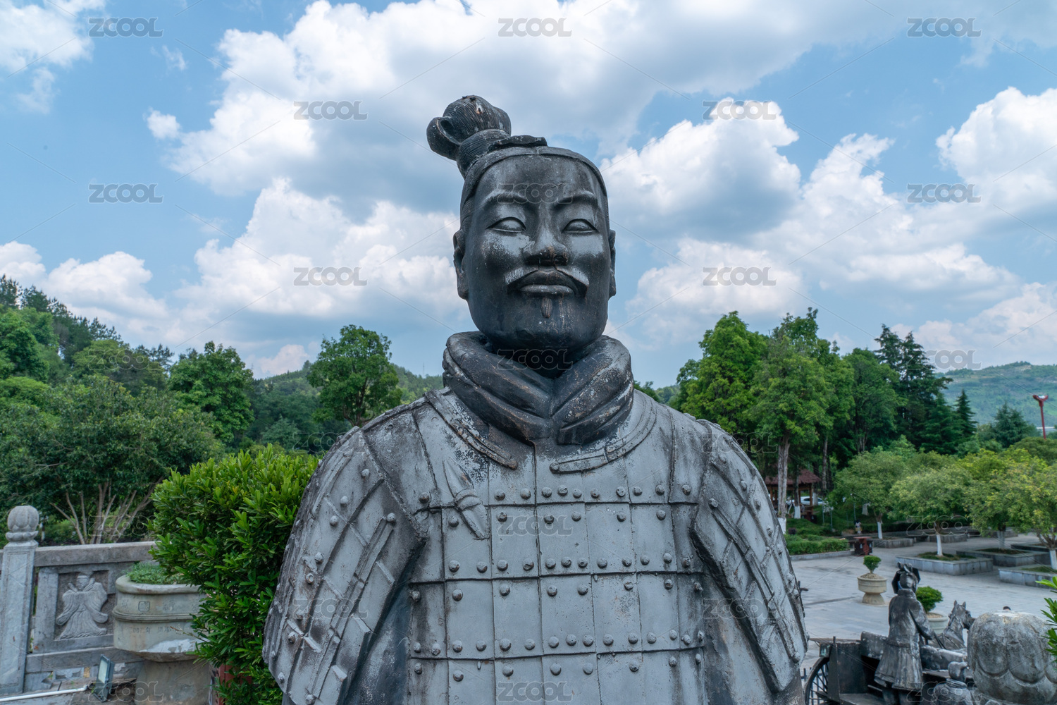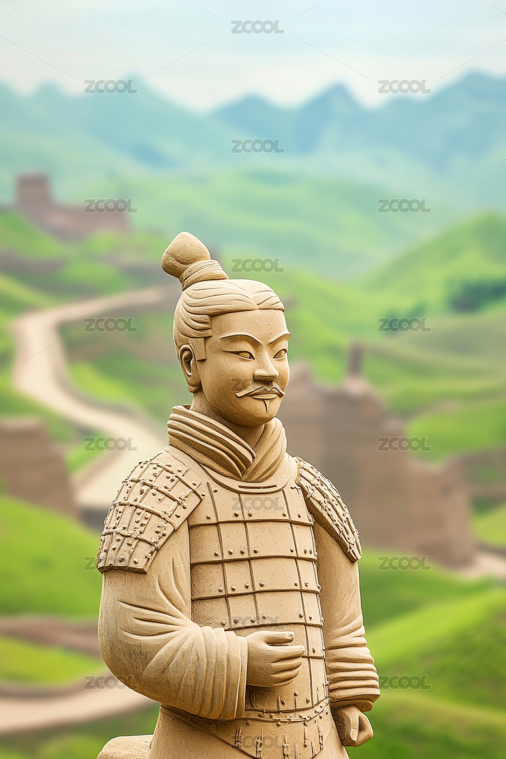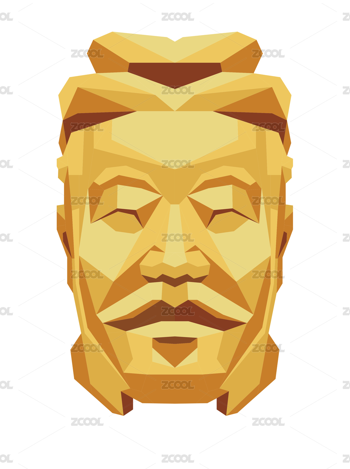 陕西西安彩色兵马俑跪射俑人物形象插画