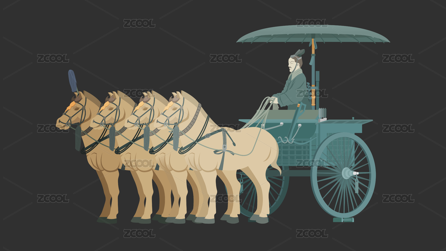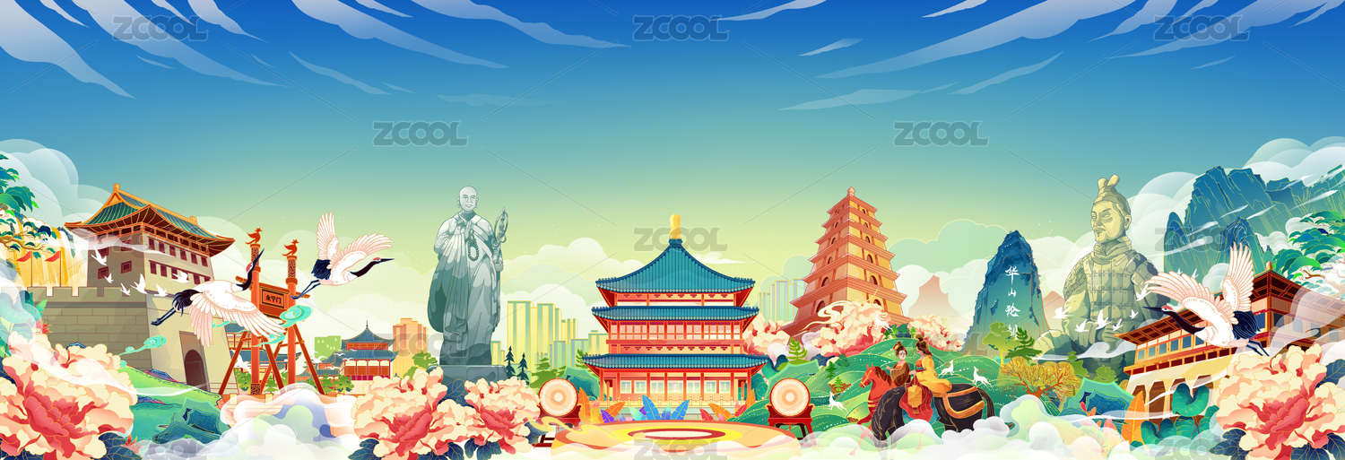 西安代表建筑大雁塔兵马俑长卷国风插画