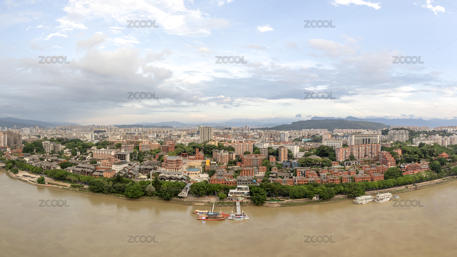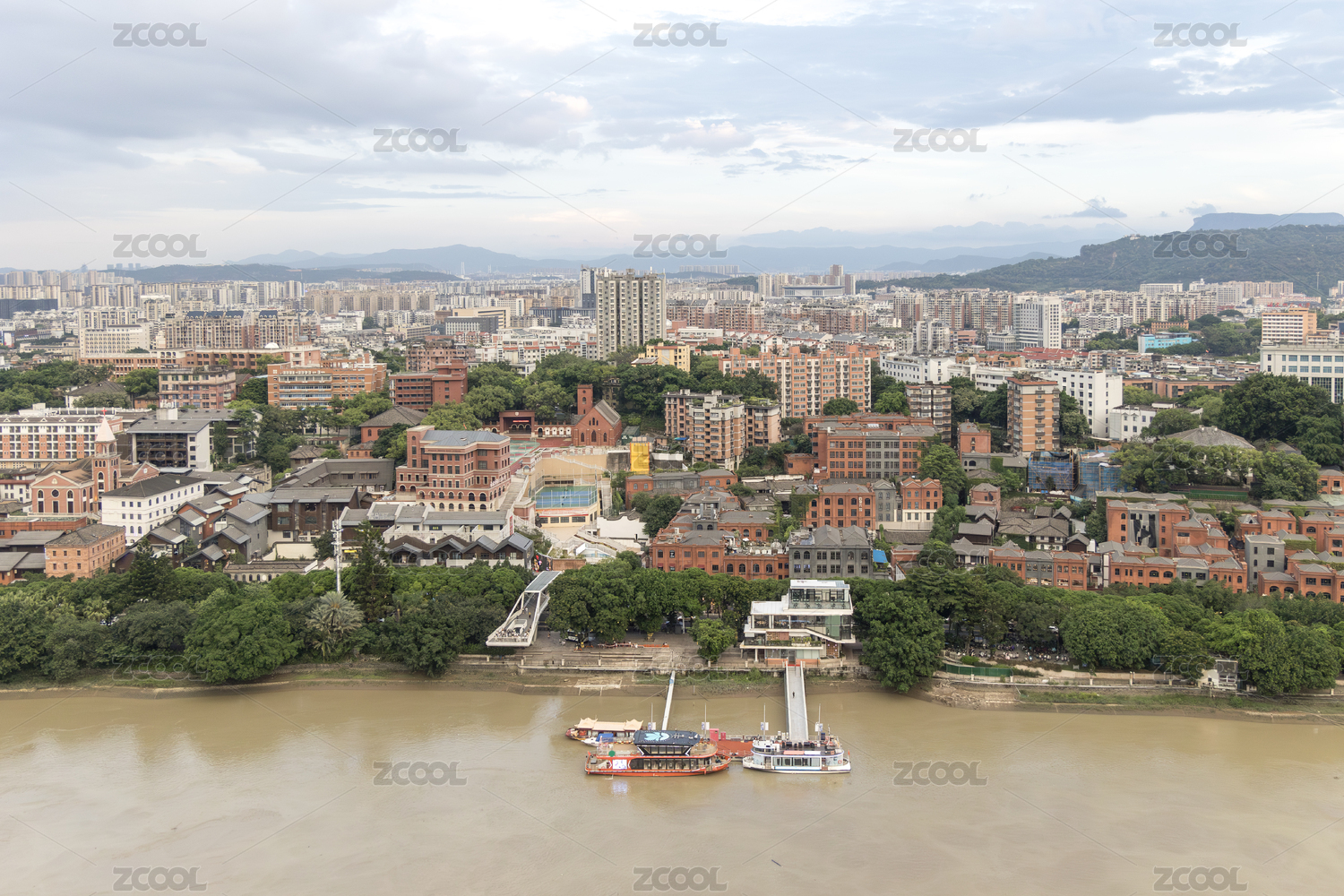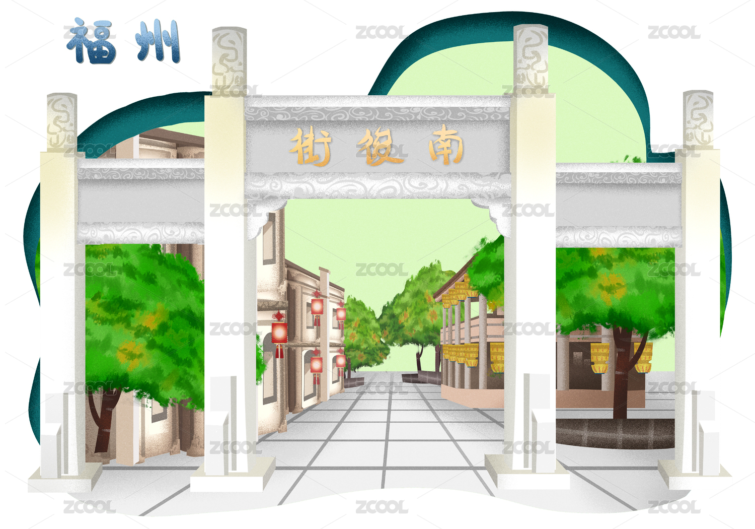 剪纸风格中国福建省福州市著名景点三坊七巷南后街插画