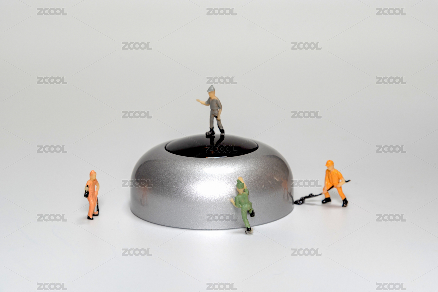 微缩的工人人偶在修理硬币