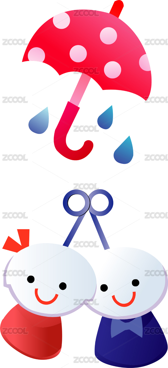 卡通简笔画插图雨伞和人偶矢量图