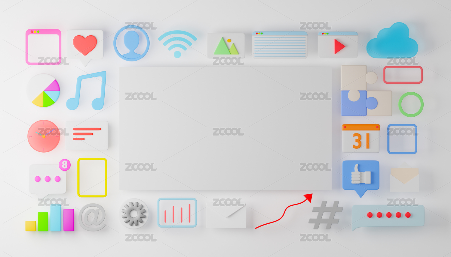 PS绘制3D智能手机、应用程序——邮件、购物、创意、云计算、WiFi、大数据、社交、音乐等图标