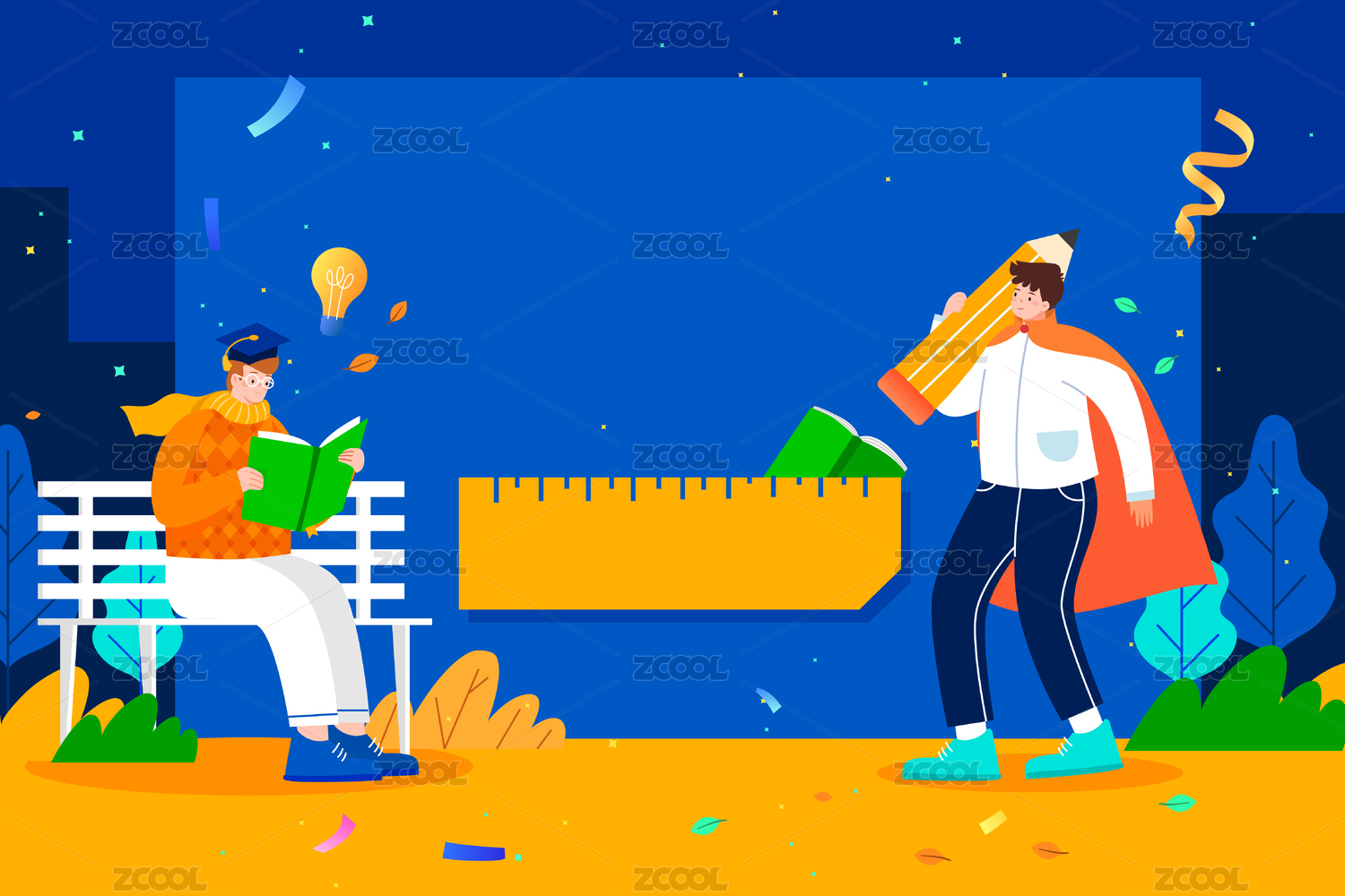 暑假寒假补习班插画