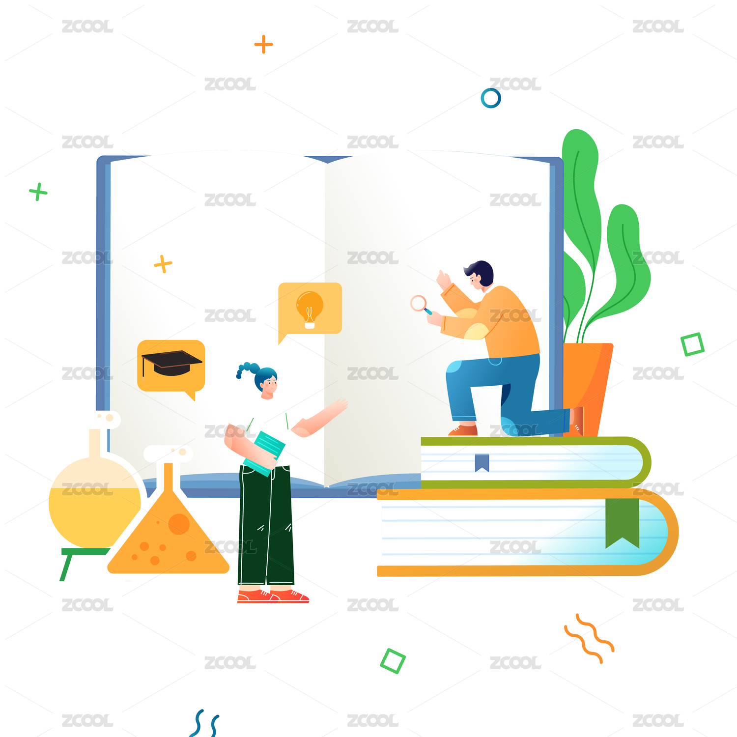 卡通手绘读书补习教育世界读书日插画