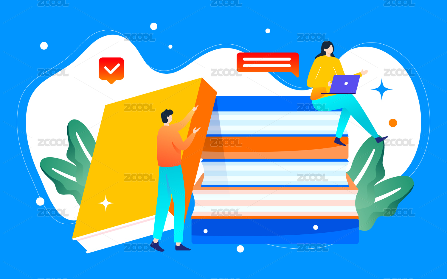 卡通在线网课互联网读书日学习课程补习培训