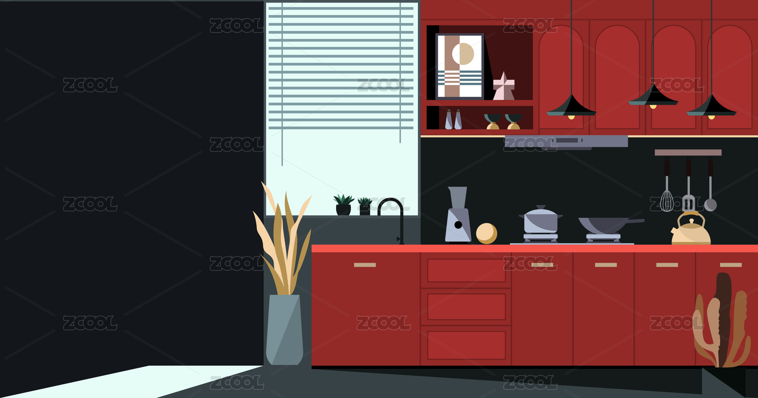 扁平厨房浴室电器家装插画
