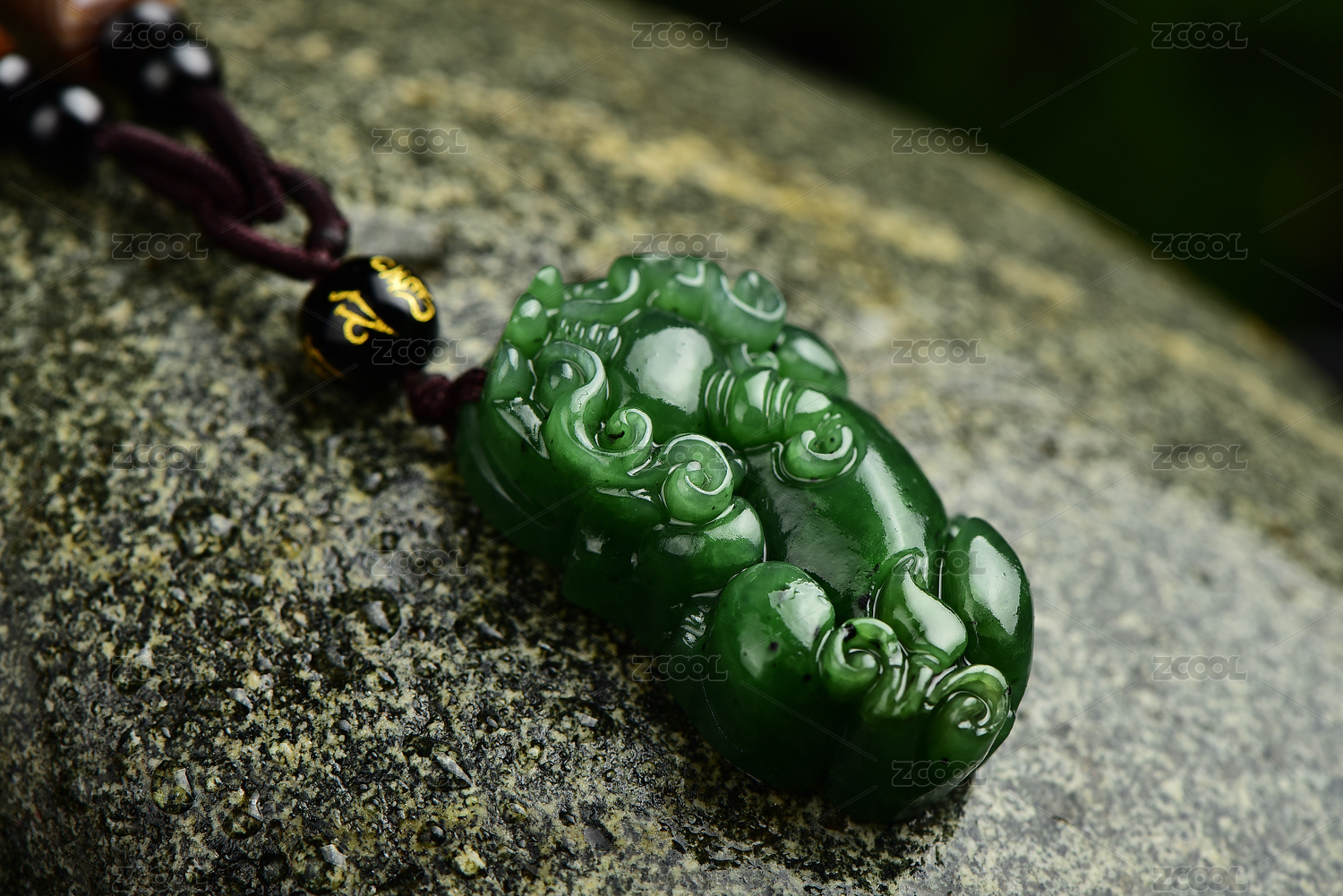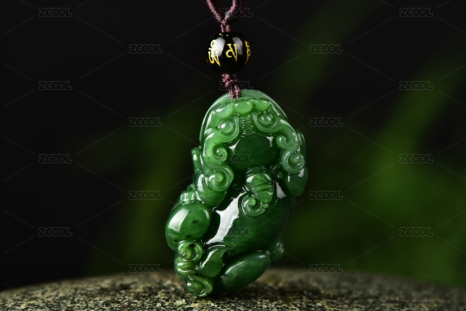 一只碧绿色国潮风格的辟邪镇宅瑞兽貔貅插画