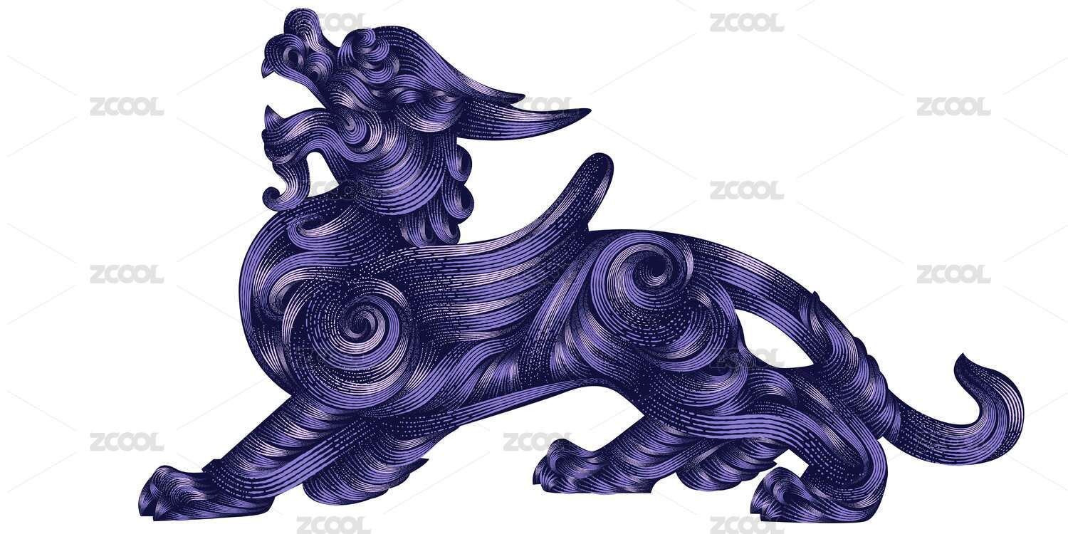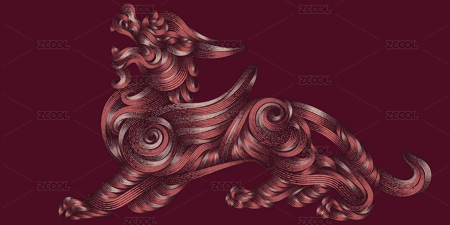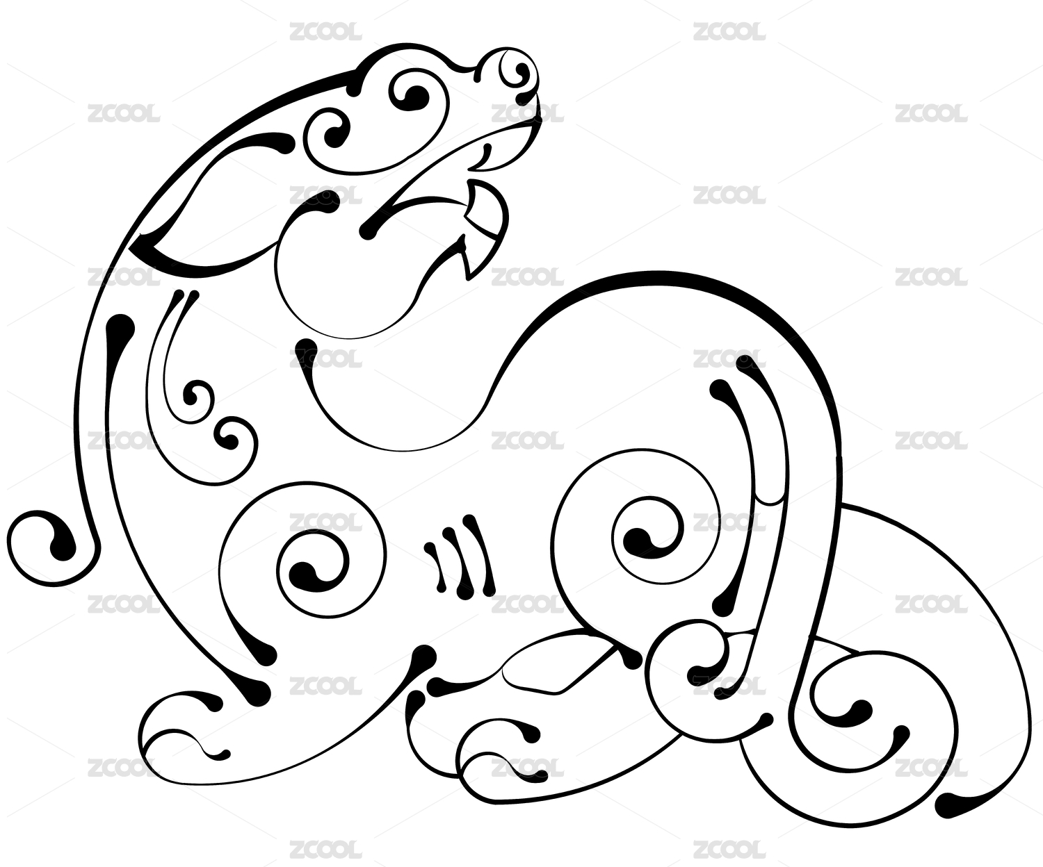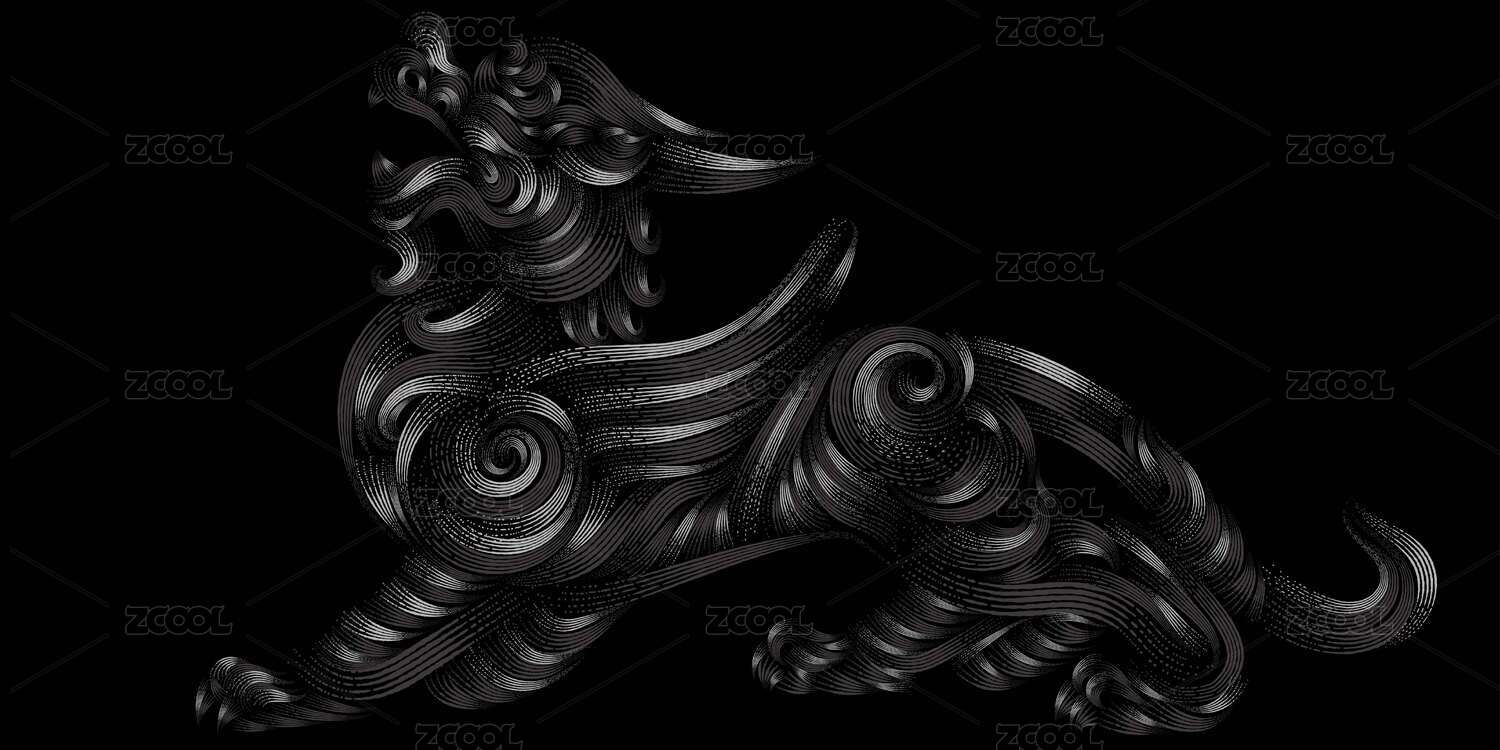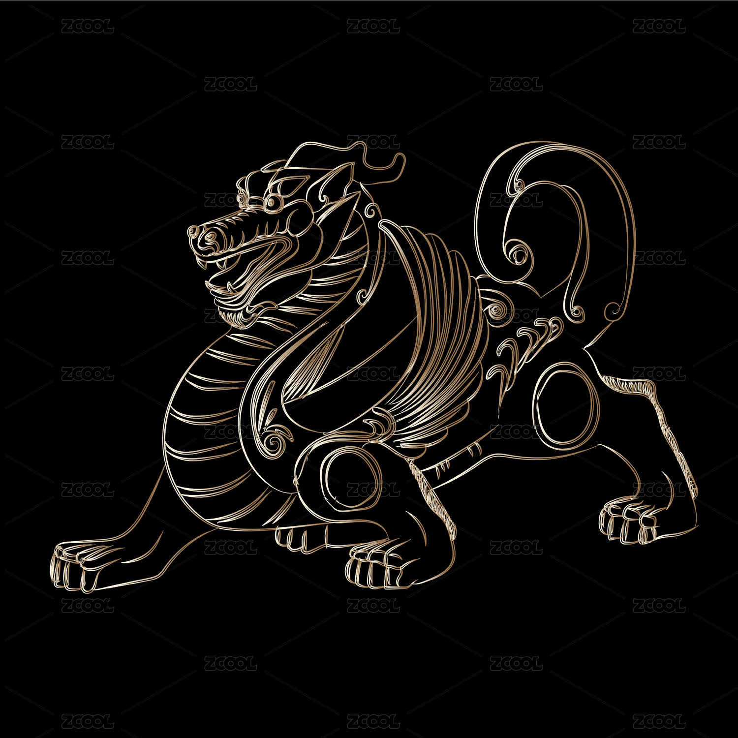 传统古典手绘飞天貔貅神兽矢量白描中国画