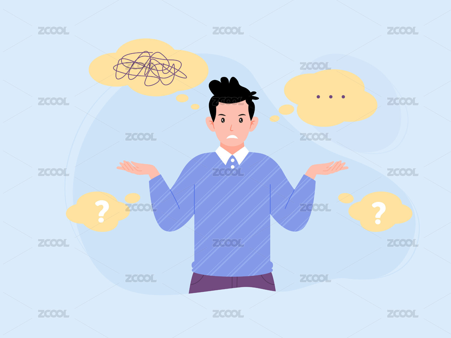 一个不开心的男生摊开双手矢量插画