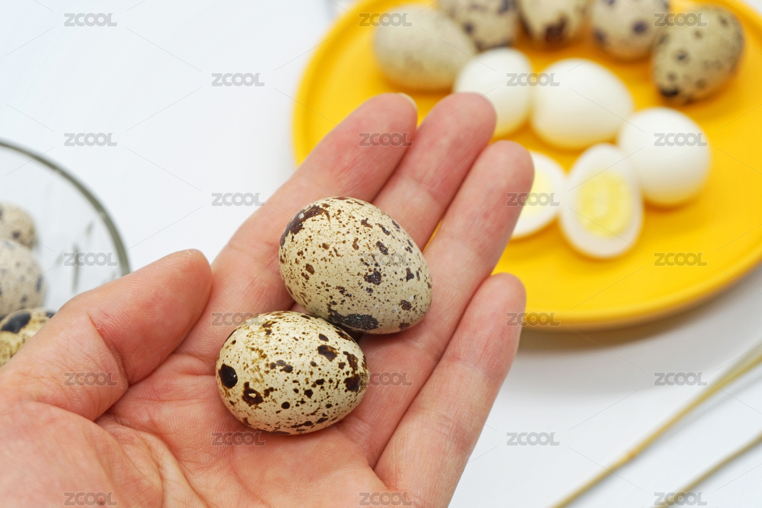 白色背景中的美味的煮熟的鹌鹑蛋特写