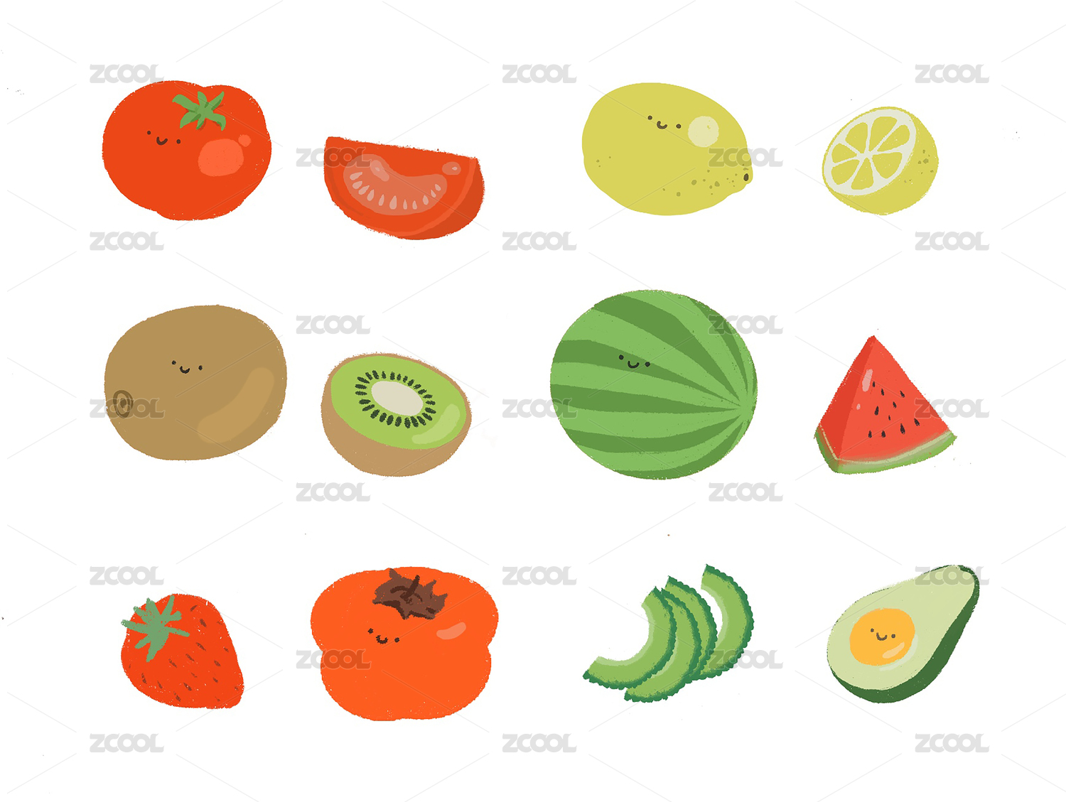数位板绘画草莓水果元素装饰画素材平涂插画