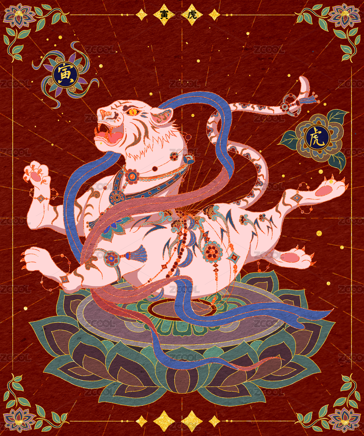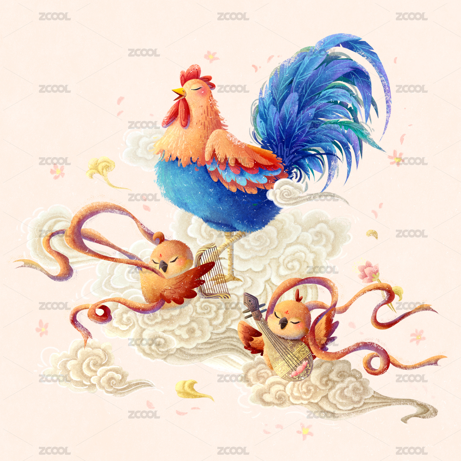 十二生肖之酉鸡版敦煌飞天国风小场景插画