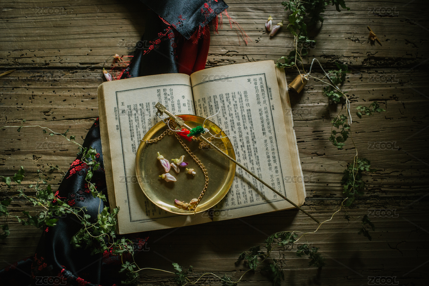 桌上放着一本书和一杆药材秤