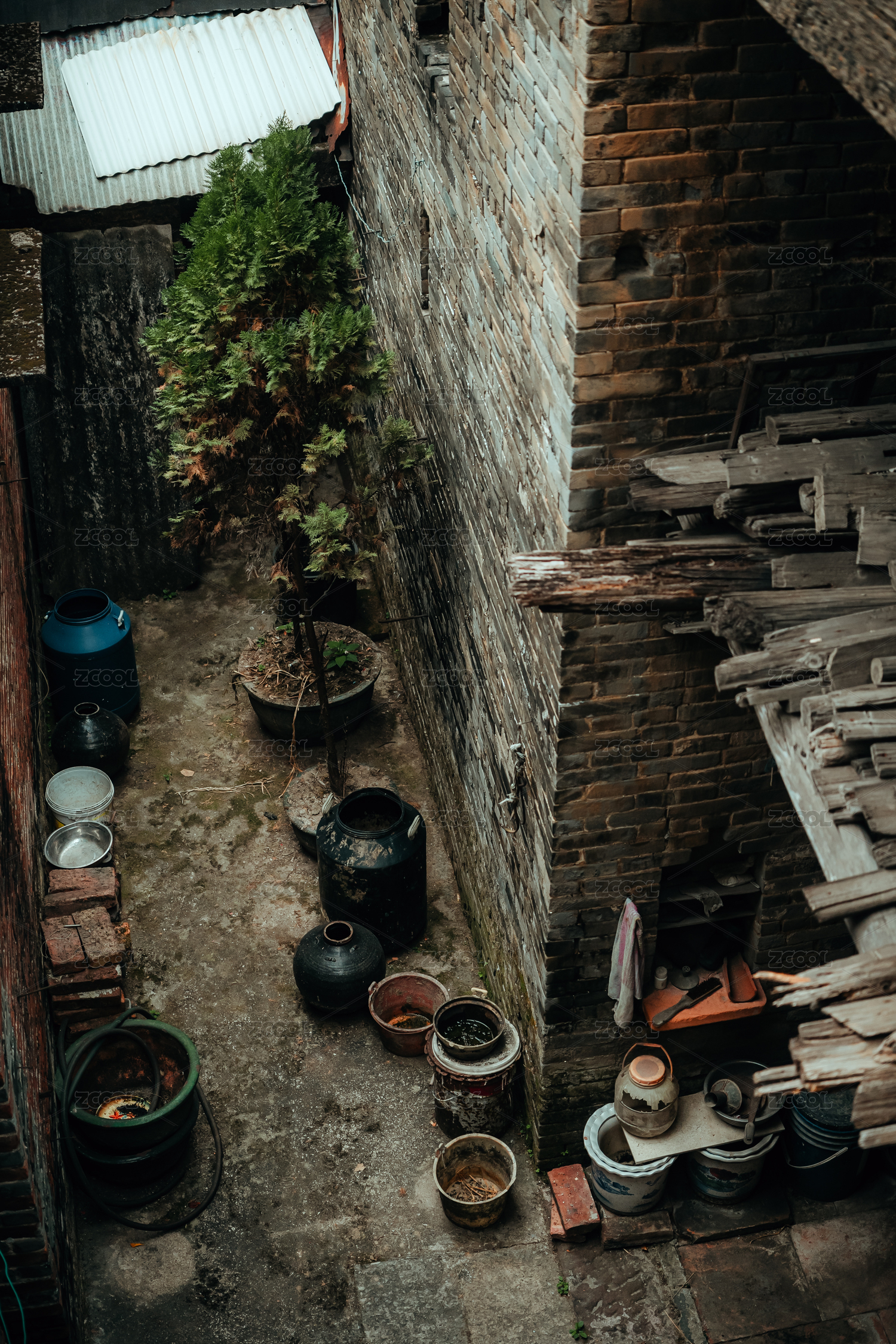 老房子外的瓶瓶罐罐