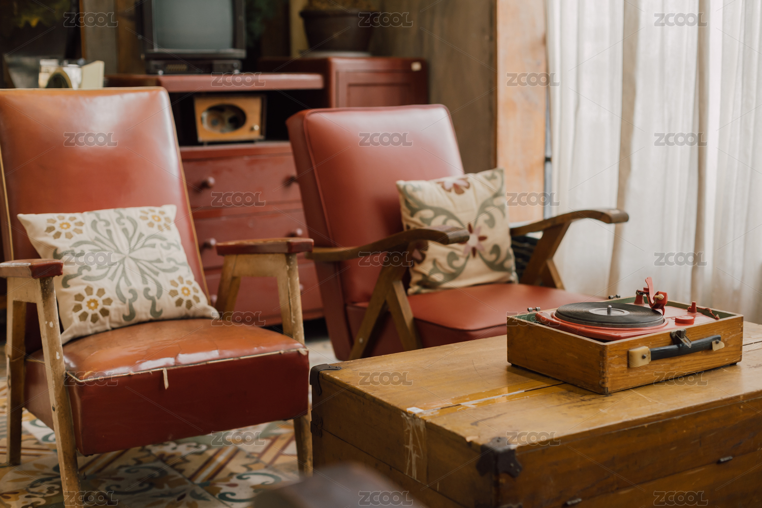 怀旧复古红色沙发