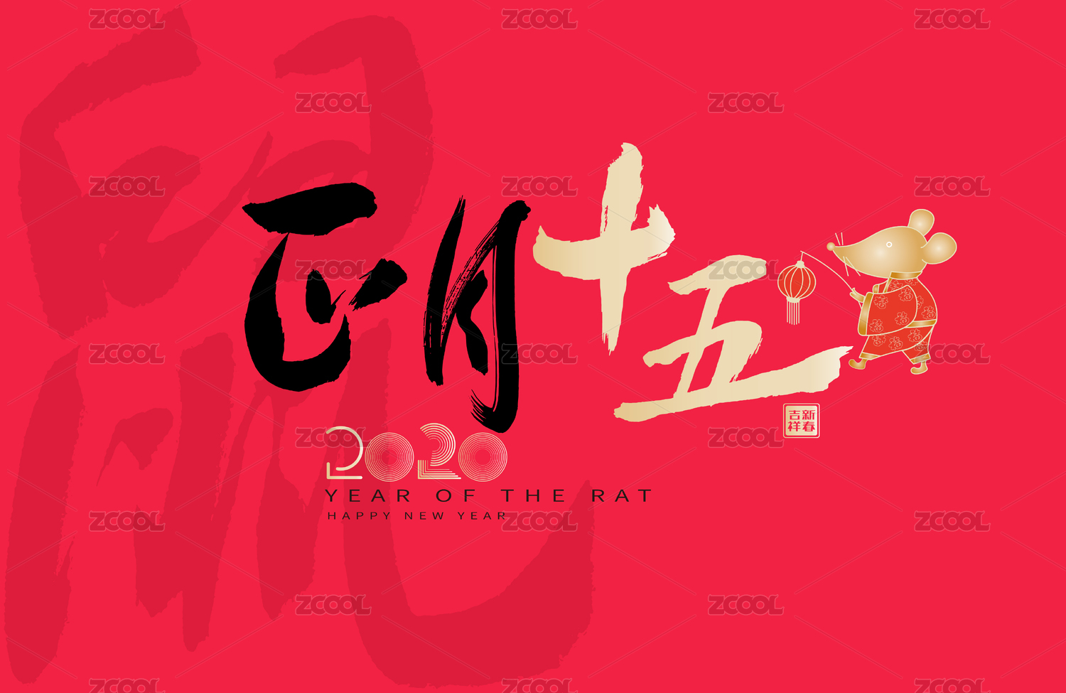 正月十五,中国风鼠年元素矢量书法海报