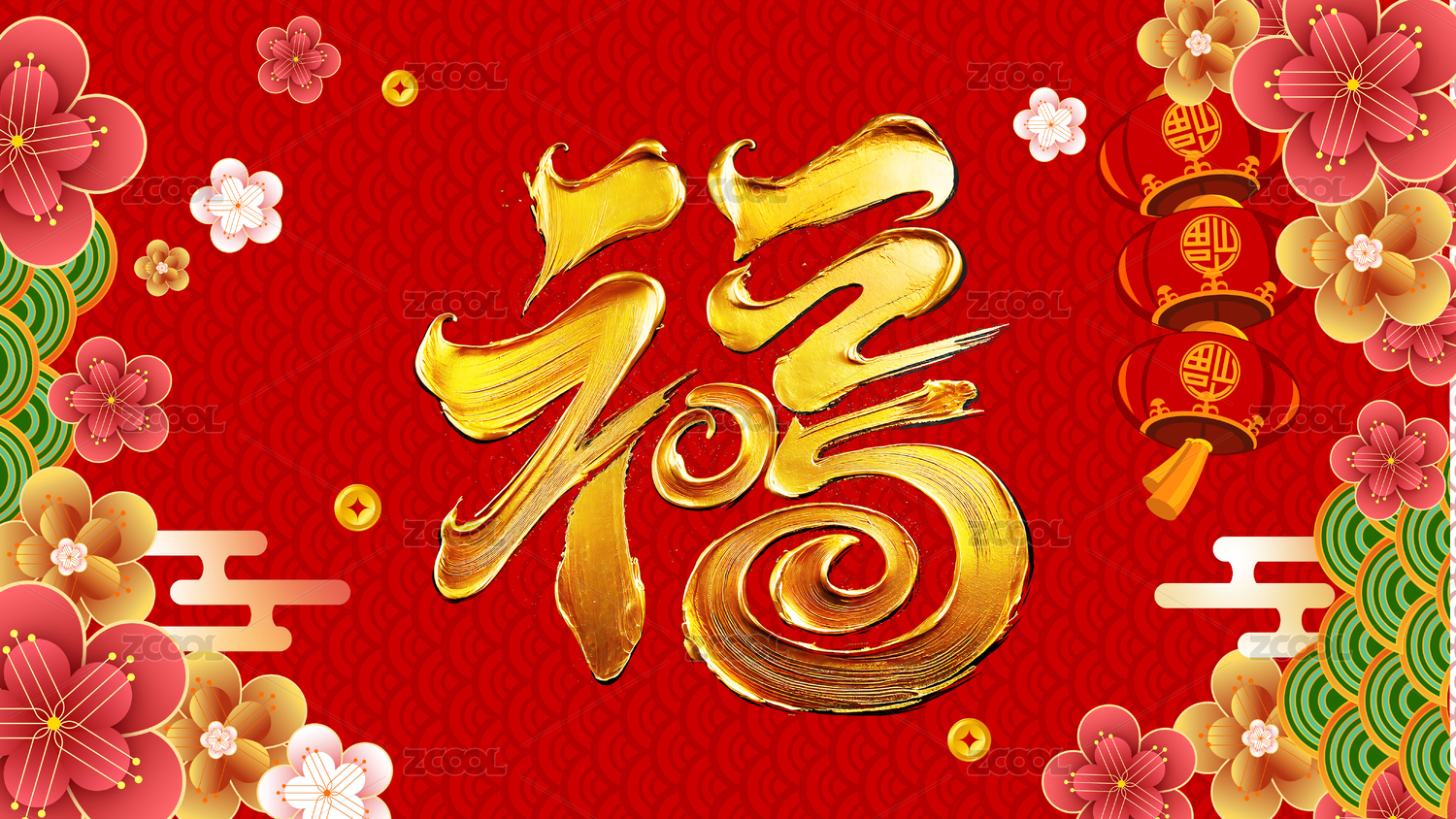 红色2020新年文字书法海报背景素材设计