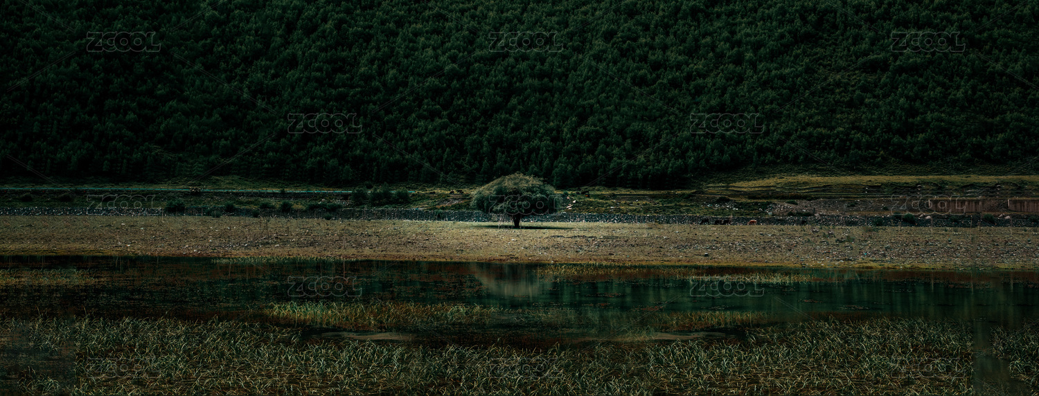 黑白光影强烈女巫帽小女孩站在树林中喂鸽子