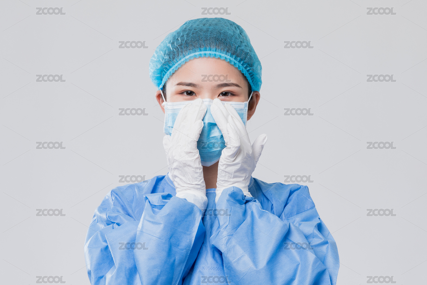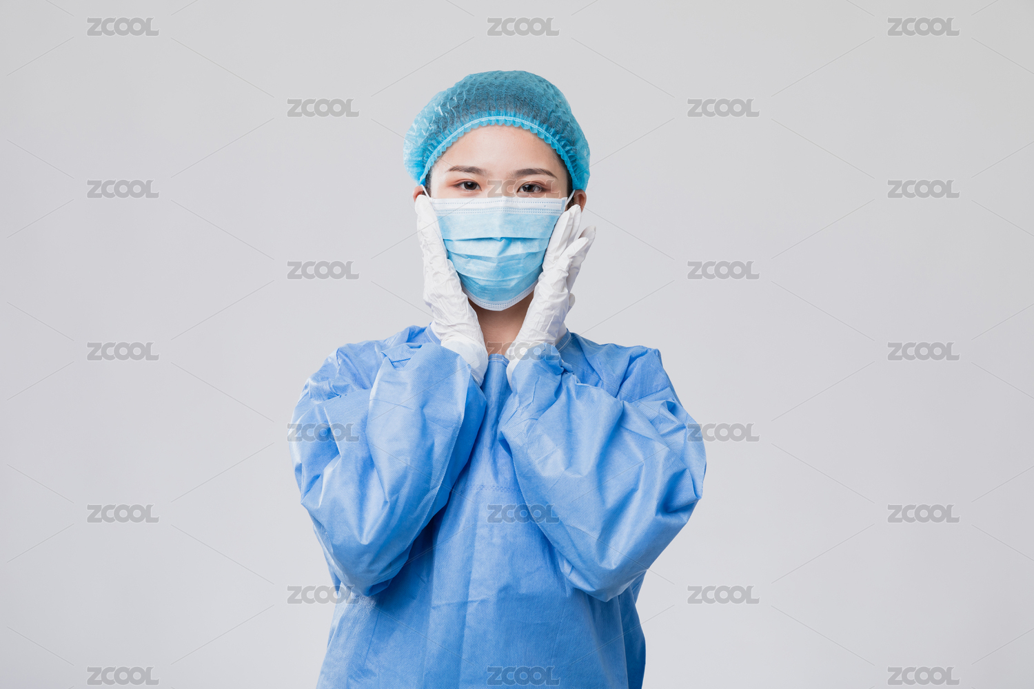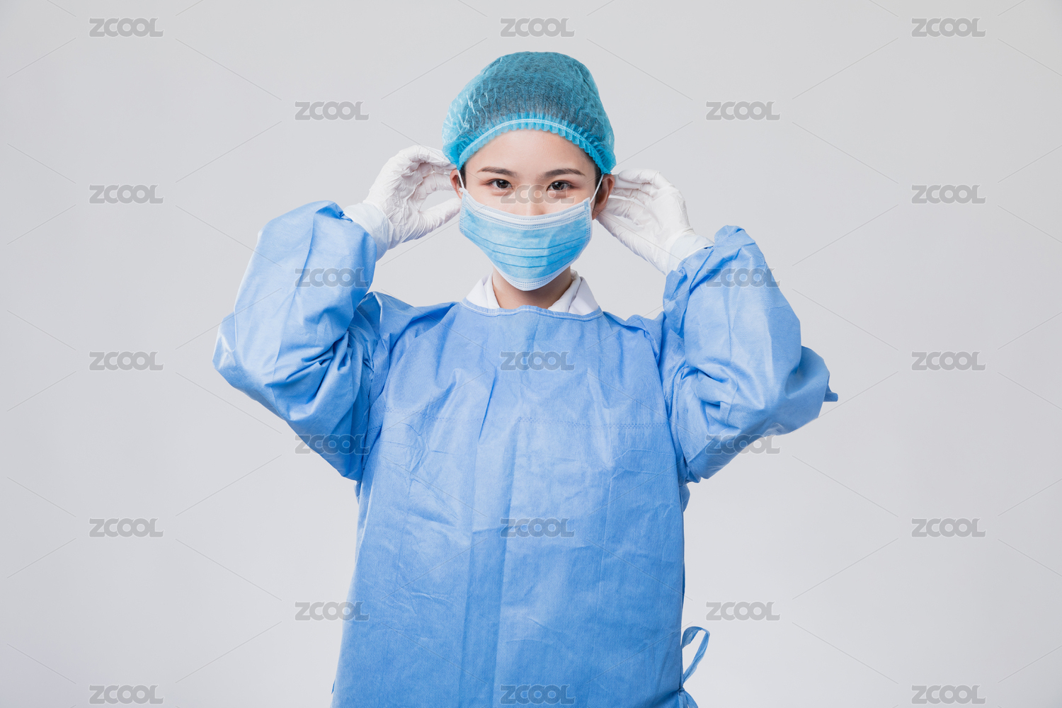 医护人员示范戴口罩