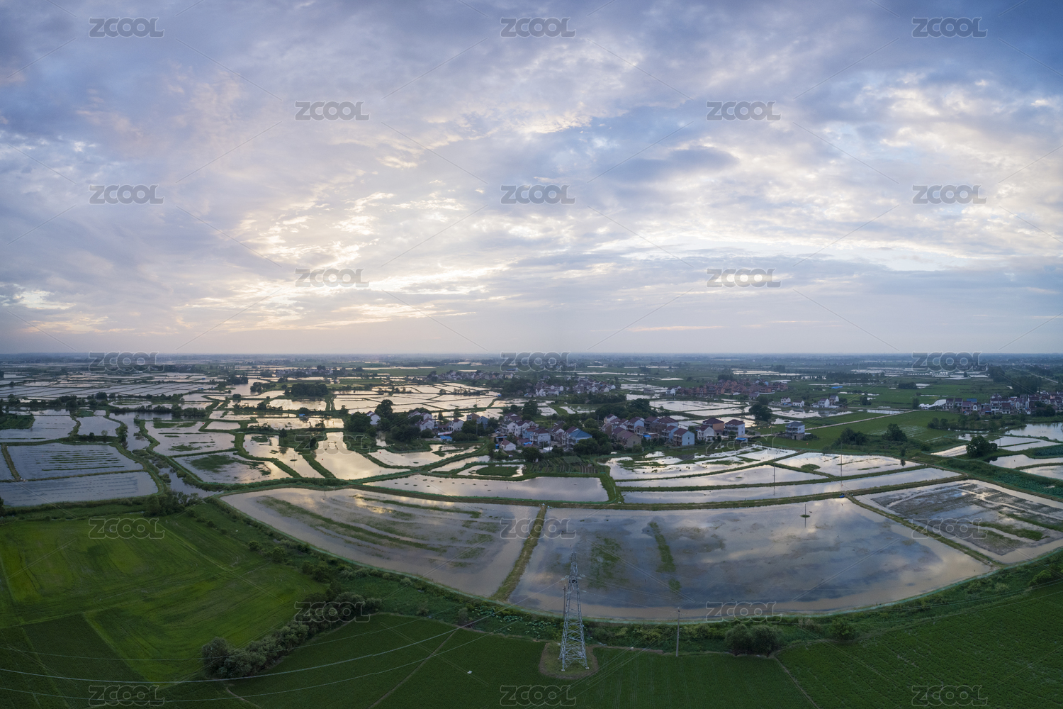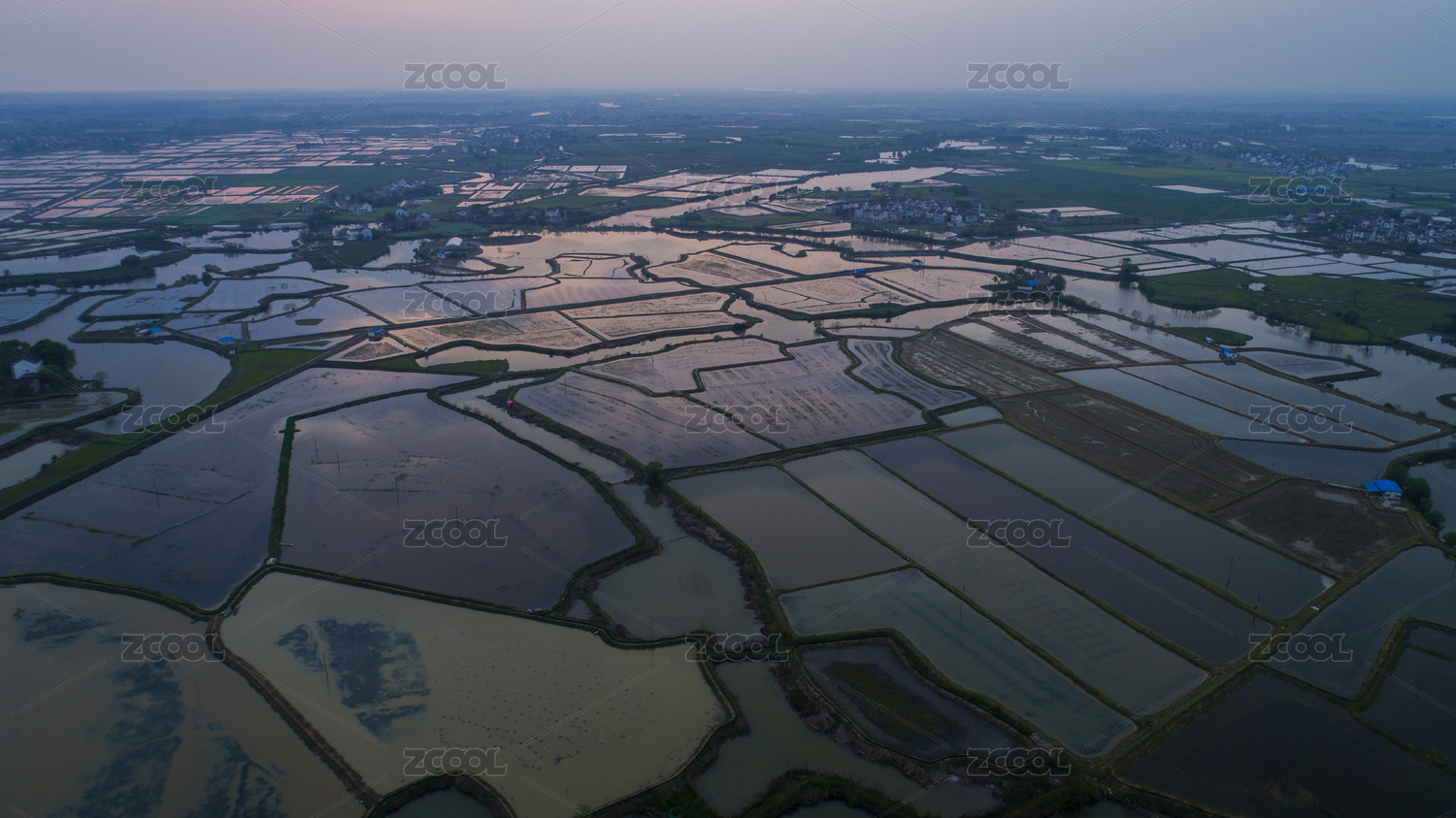航拍中国安徽省郎溪县现代农业示范区夕阳下的田园风光