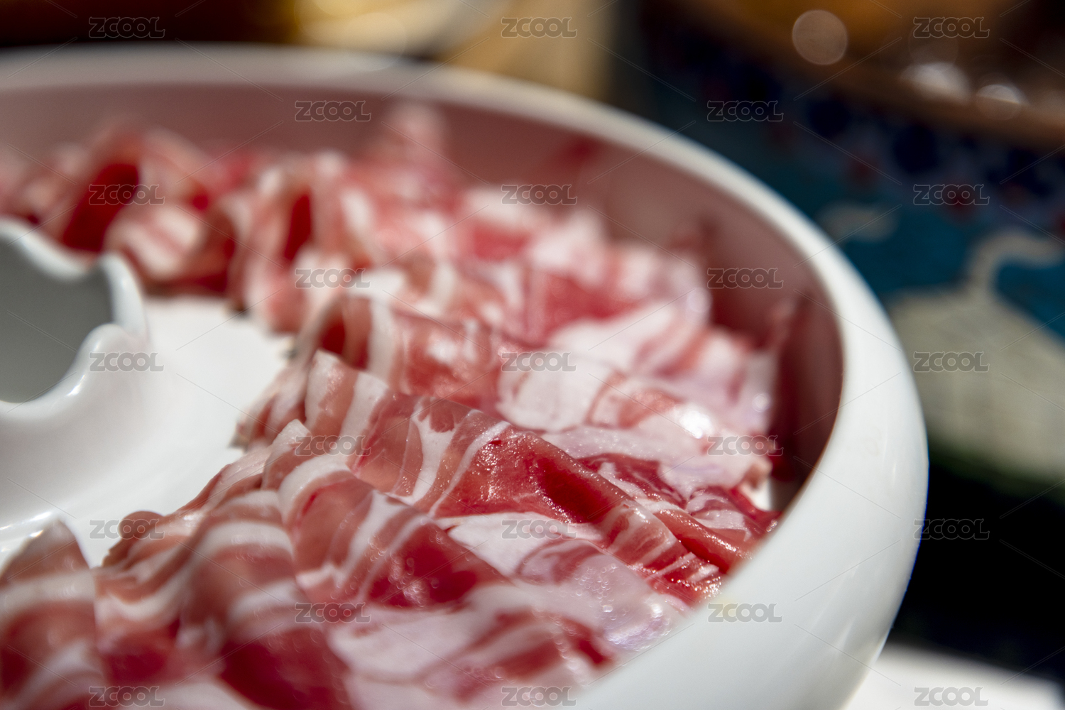 火锅店生鲜红白相间雪花肥牛肉卷