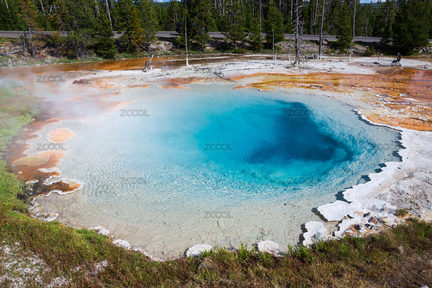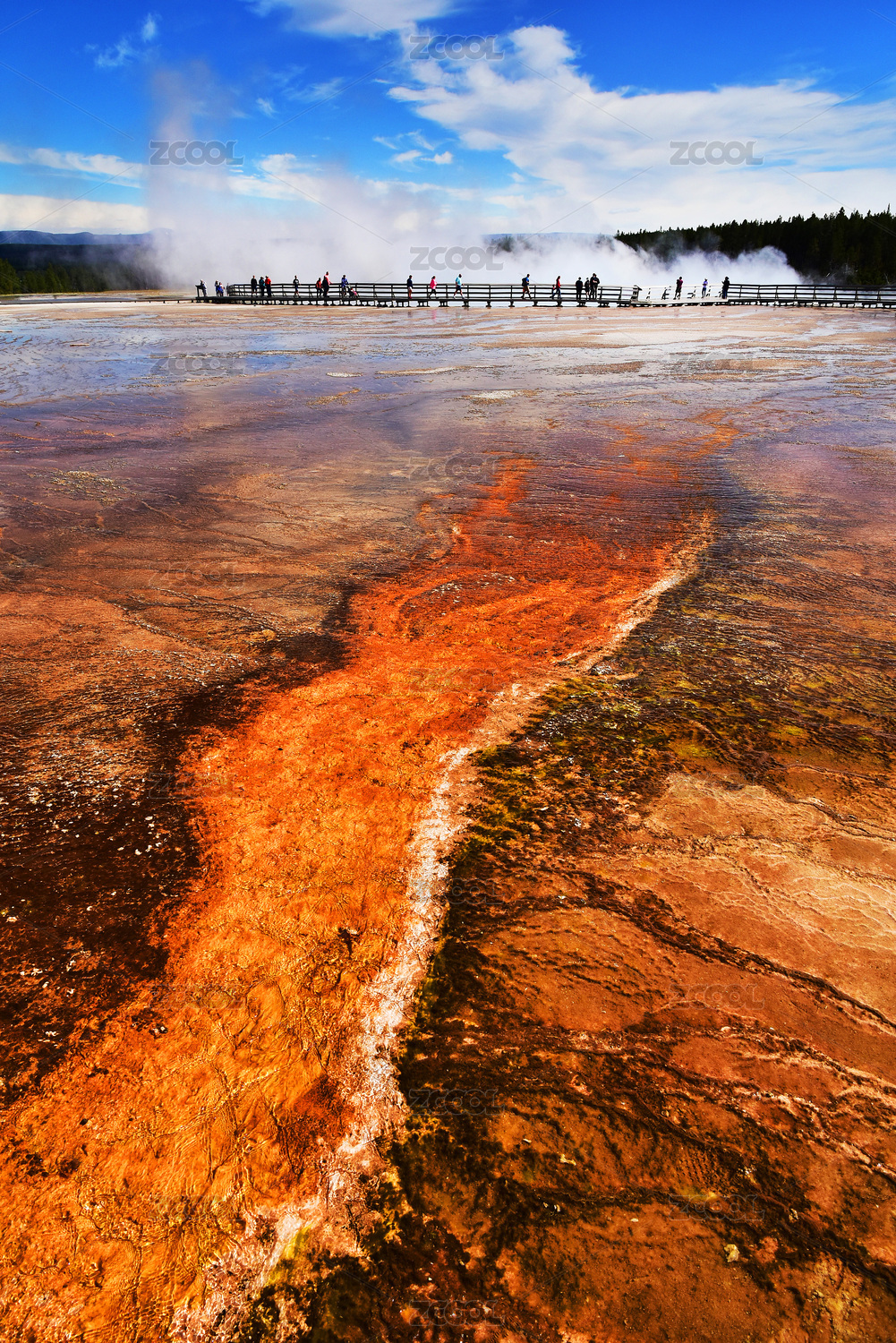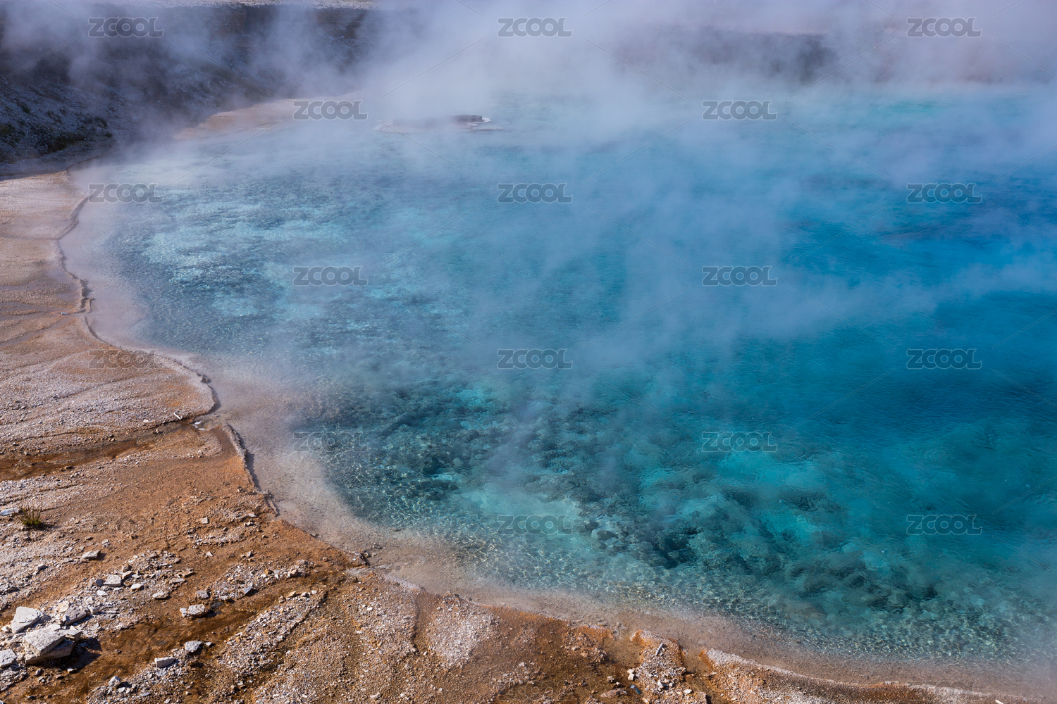 美国黄石公园间歇泉温泉桔色蓝色