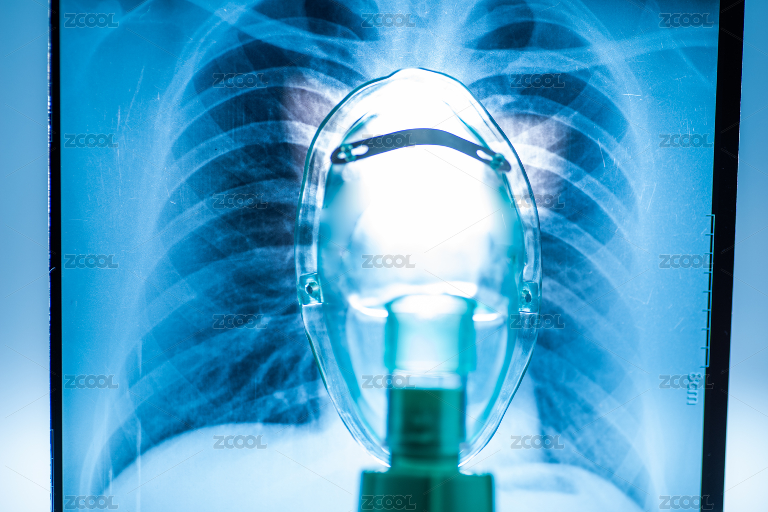 肺部X光片与氧气面罩,肺部健康,清洁呼吸
