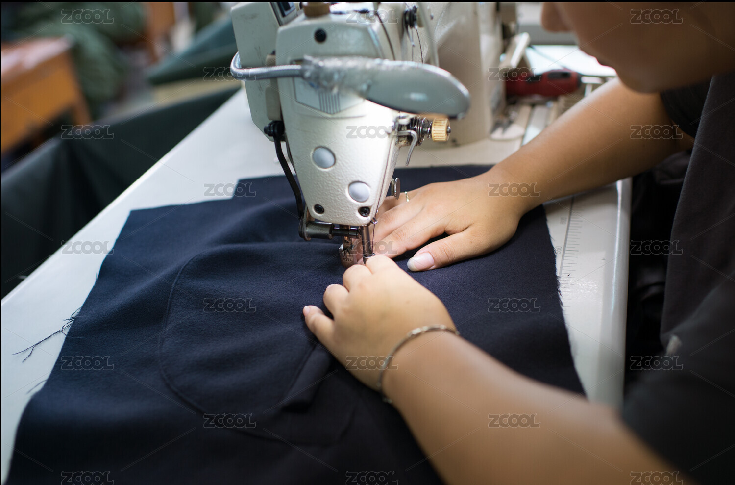 服装车间的工人在缝制服装