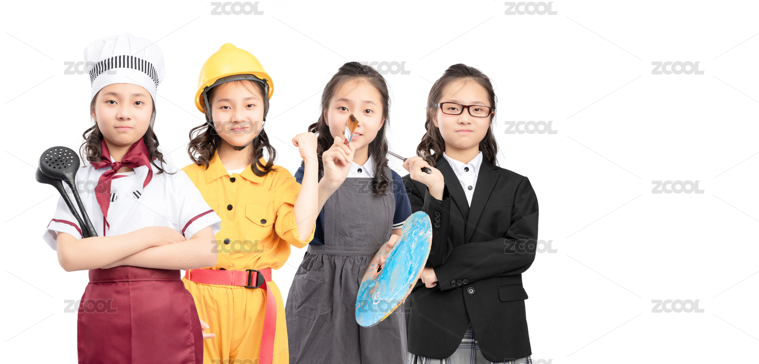 身穿各个职业制服的亚洲小学女生