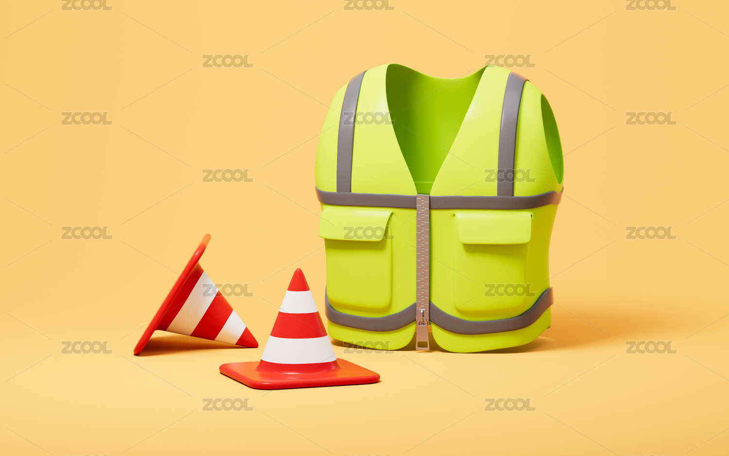 卡通工作制服和交通锥3D渲染