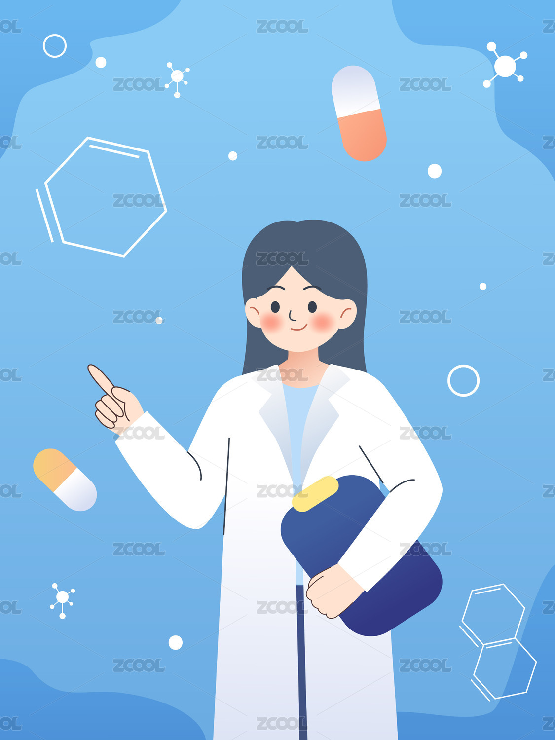 卡通手绘医生制服癌症插画