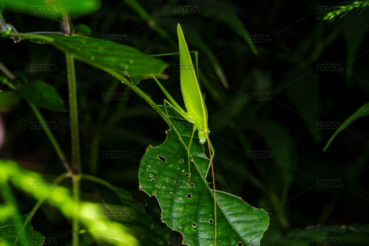 停息在枝叶上的螽斯