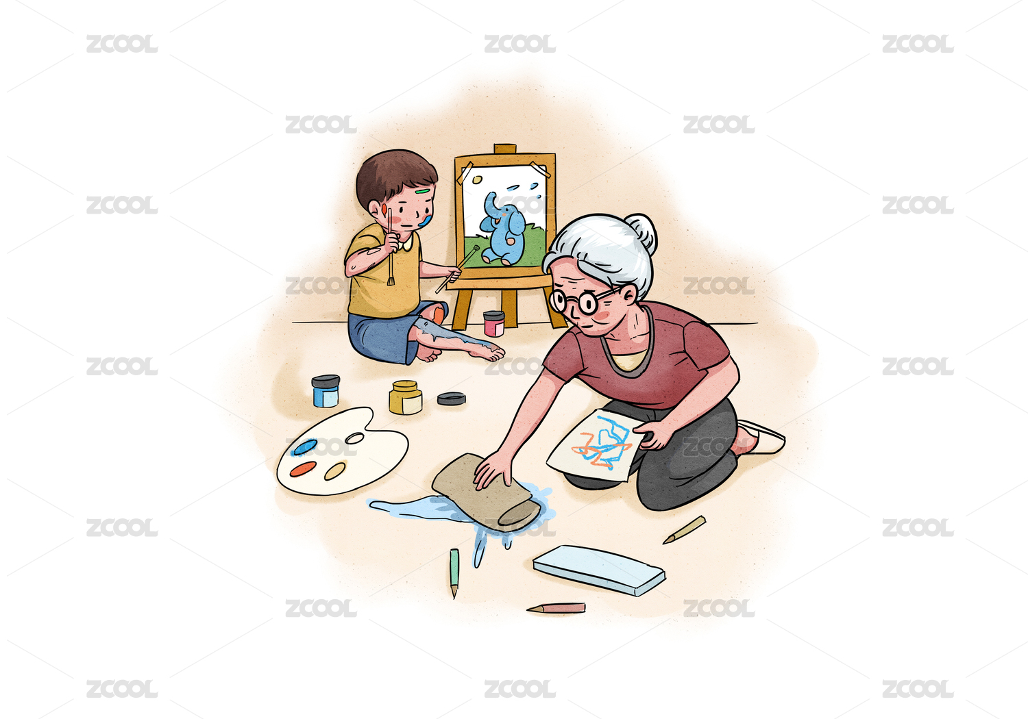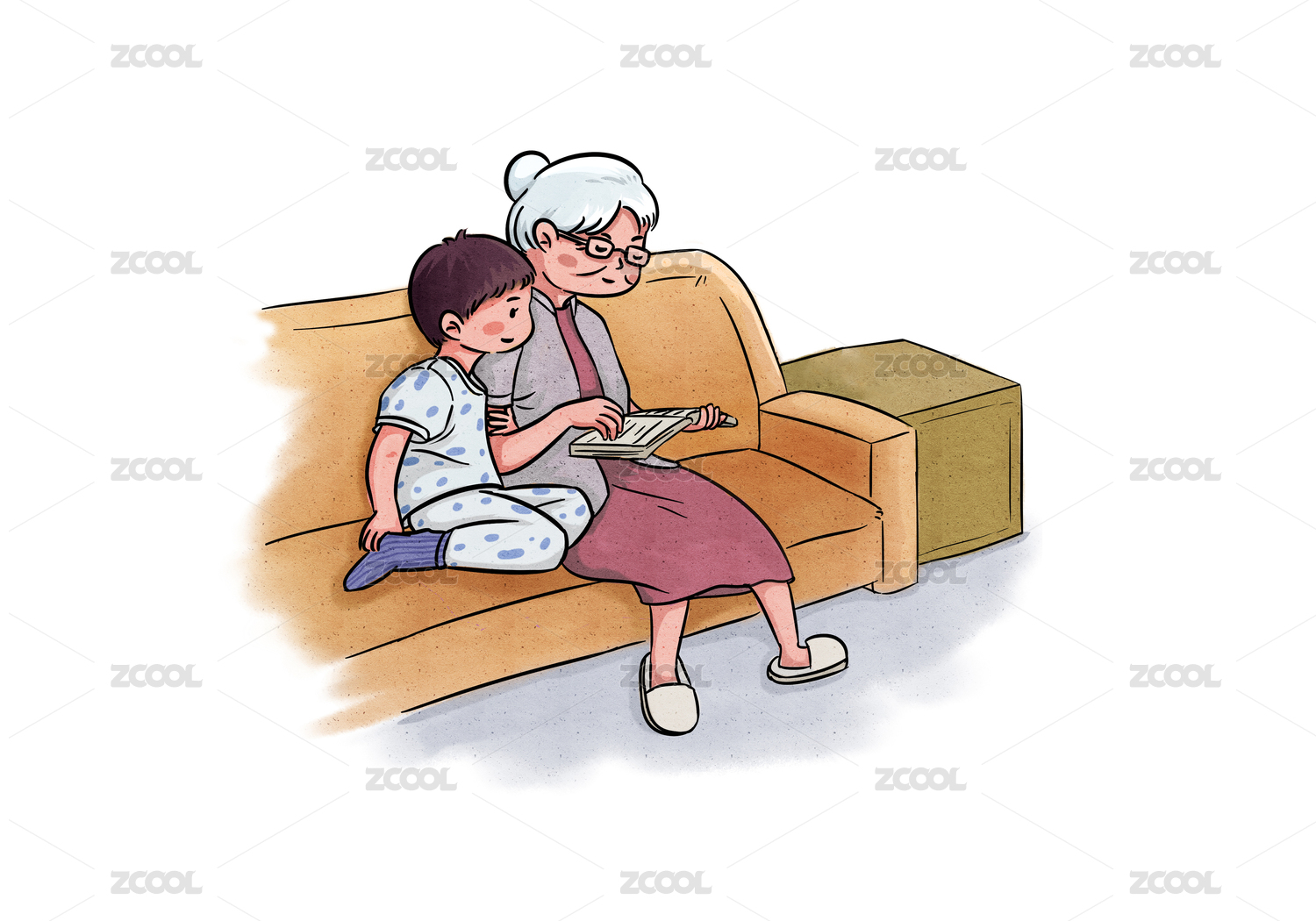 老奶奶和小朋友人物插画