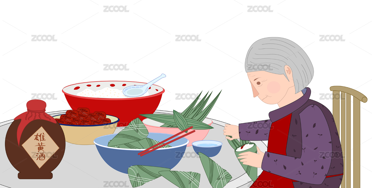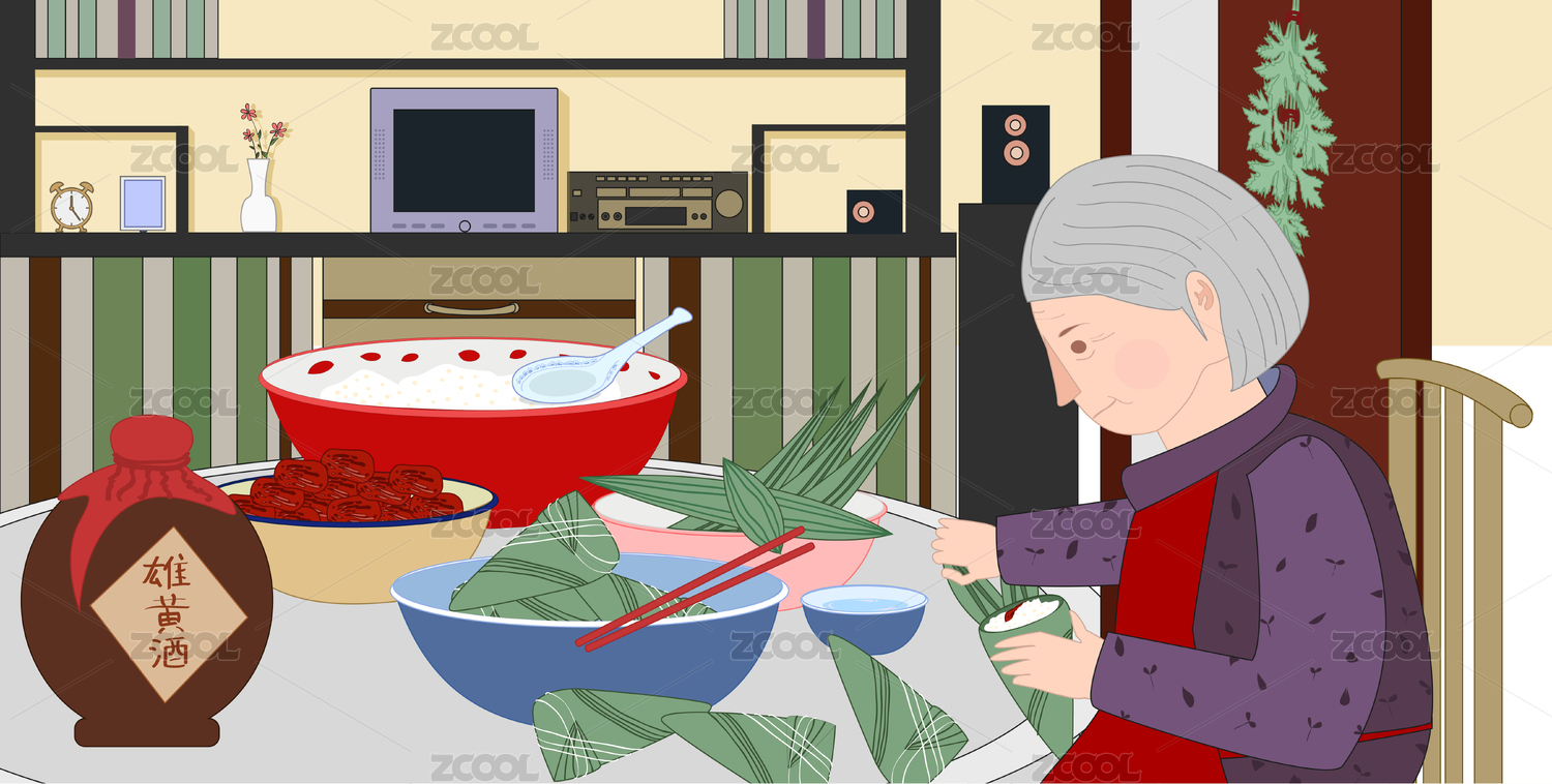 端午节老奶奶在包粽子