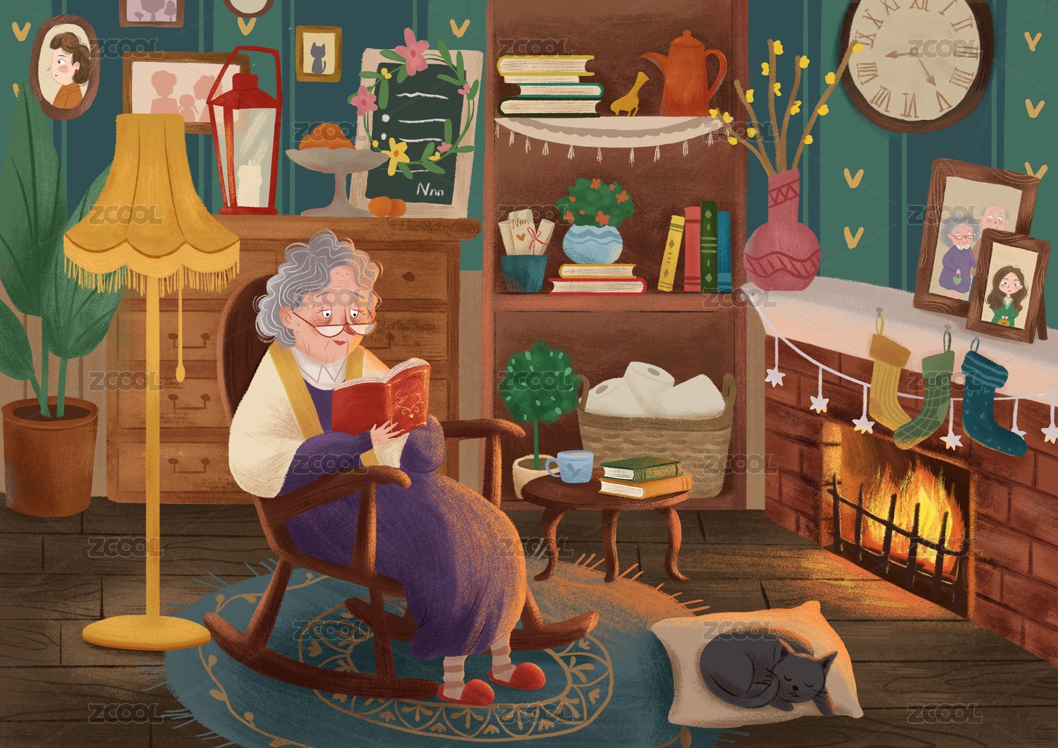 看书的老奶奶