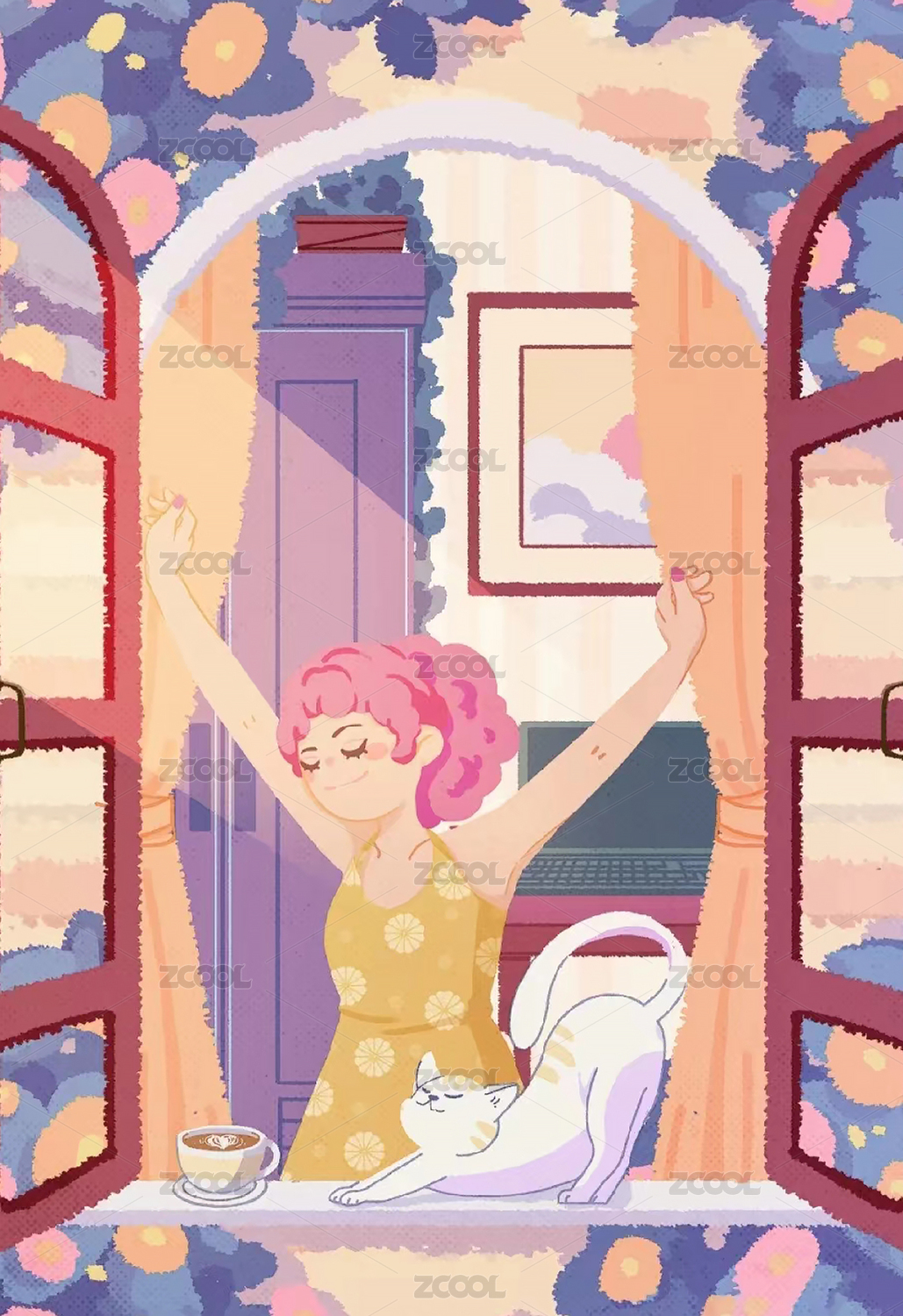 室外女孩猫咪秋天银杏落叶天空海岸休闲时光