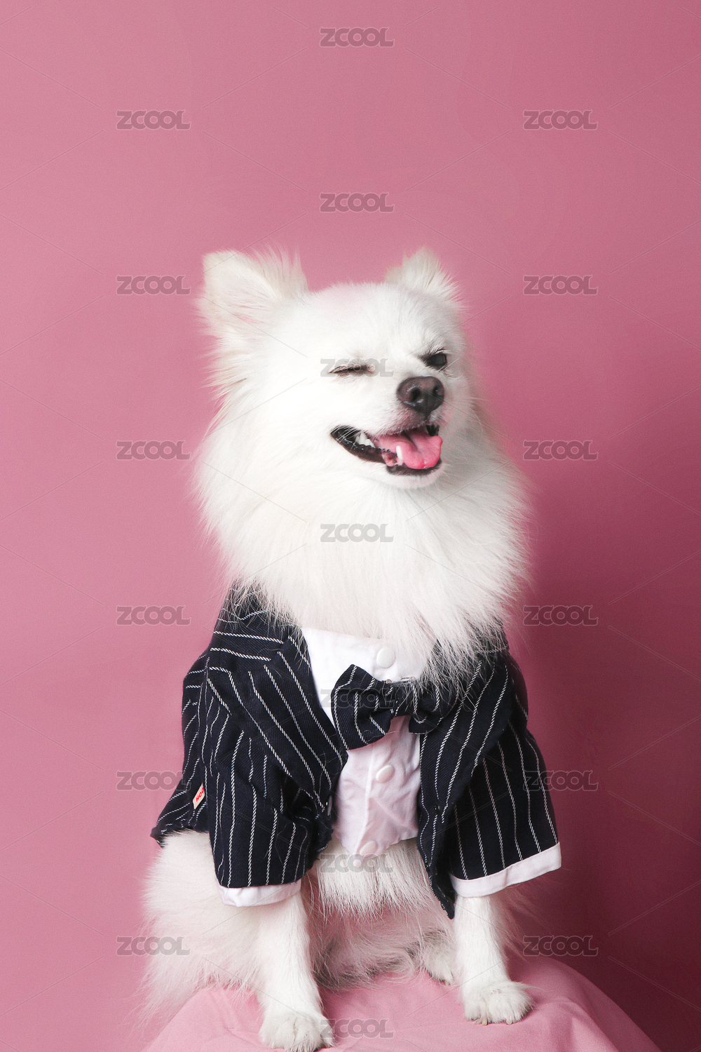 眨眼睛穿西装的白色狗狗