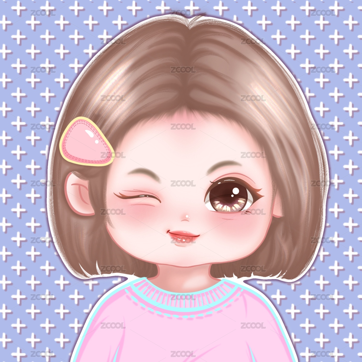 粉色可爱女孩眨眼Q版卡通头像