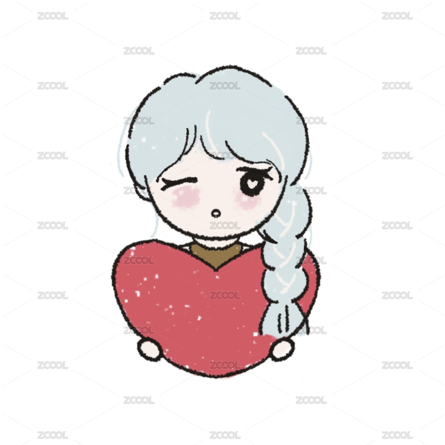女孩捧着爱心朝你眨眼