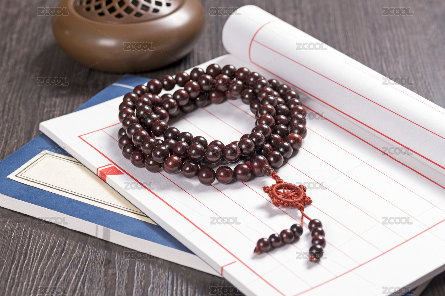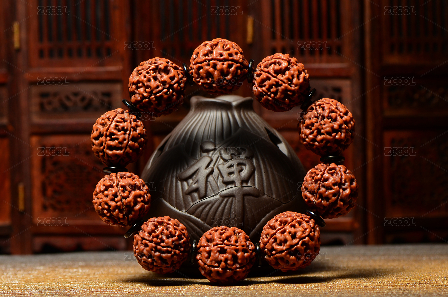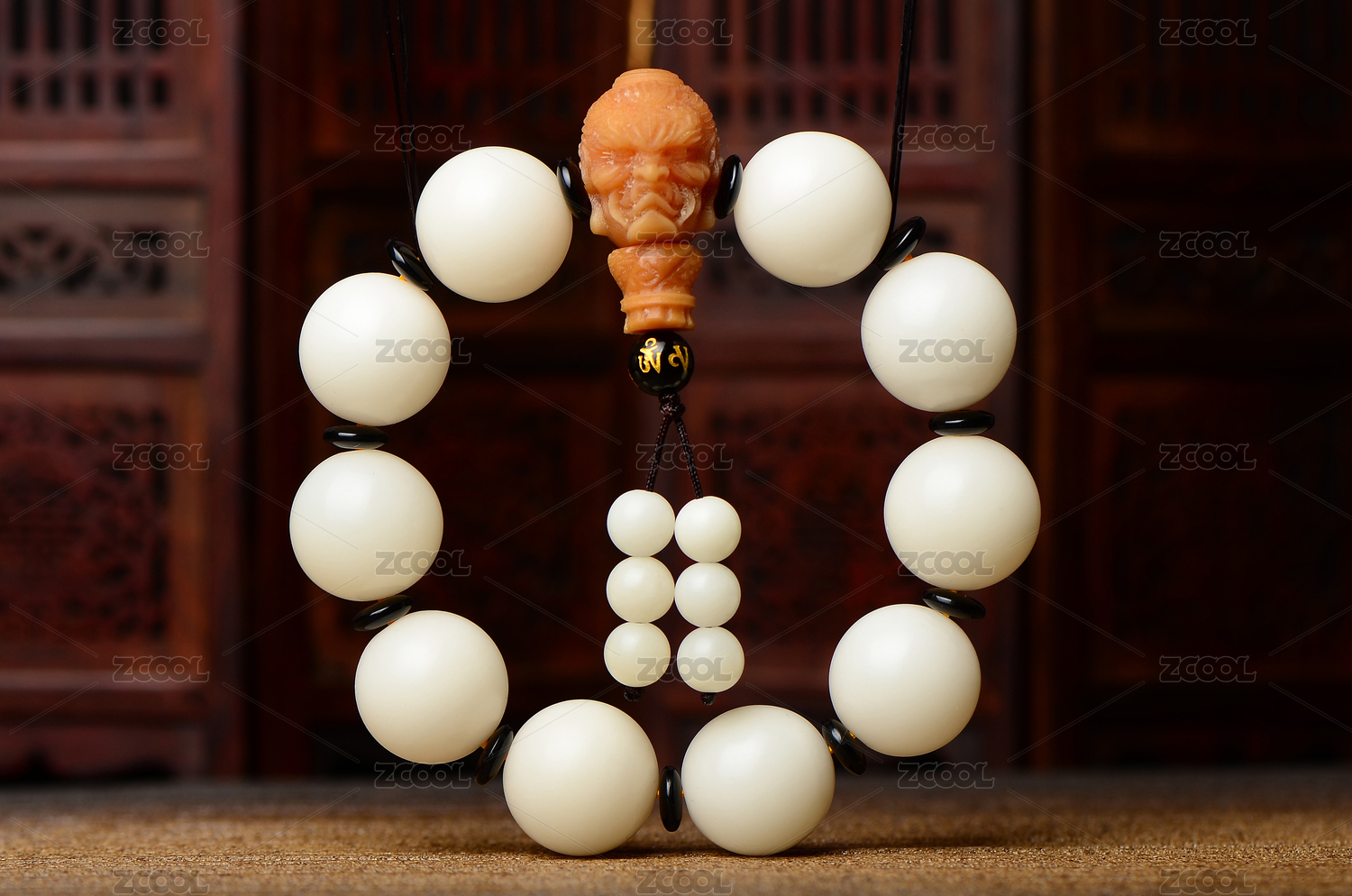 复古风格背景上的大金刚菩提子手串佛珠