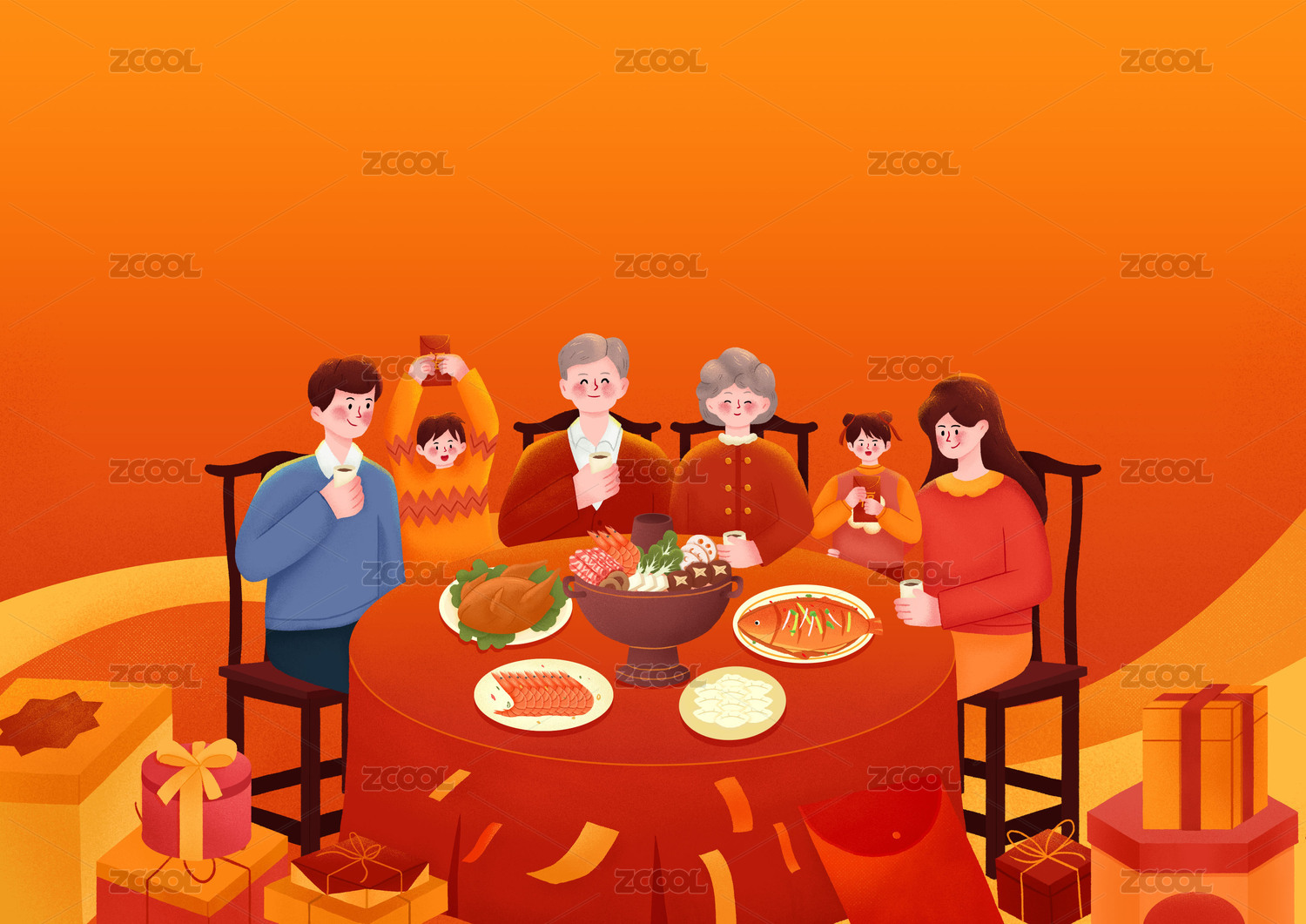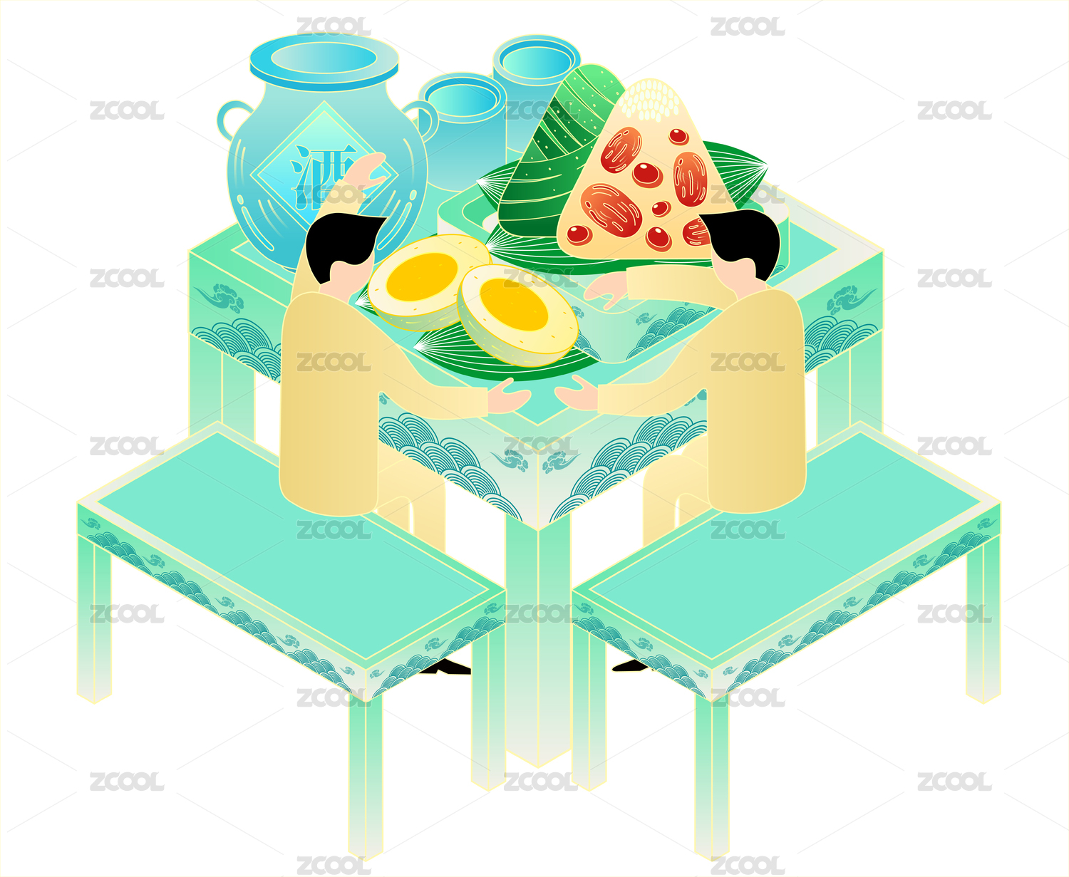 在端午节时和家人一起欢聚庆祝-治愈插画