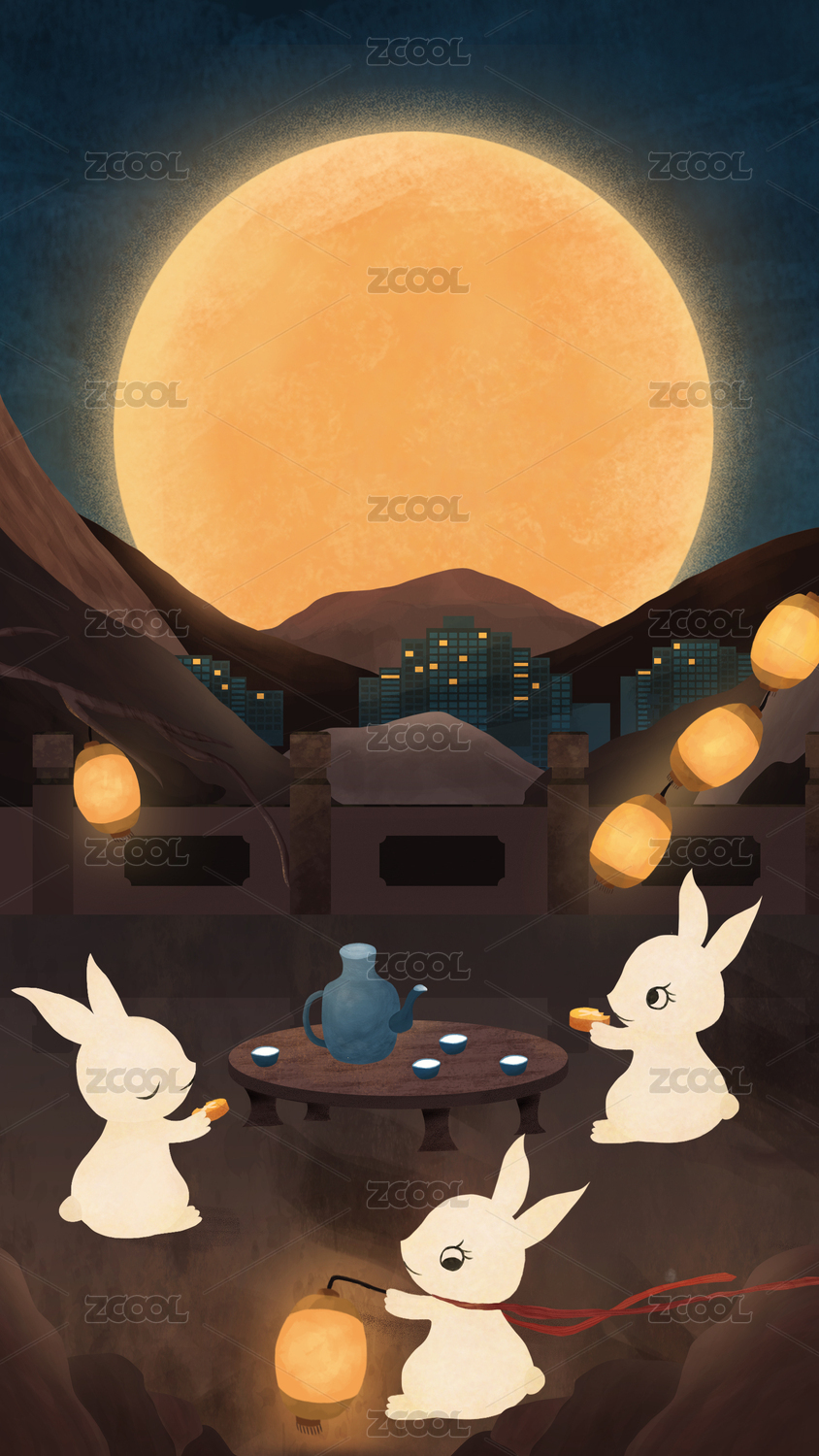 中秋佳节家庭团圆欢聚吃月饼矢量插画