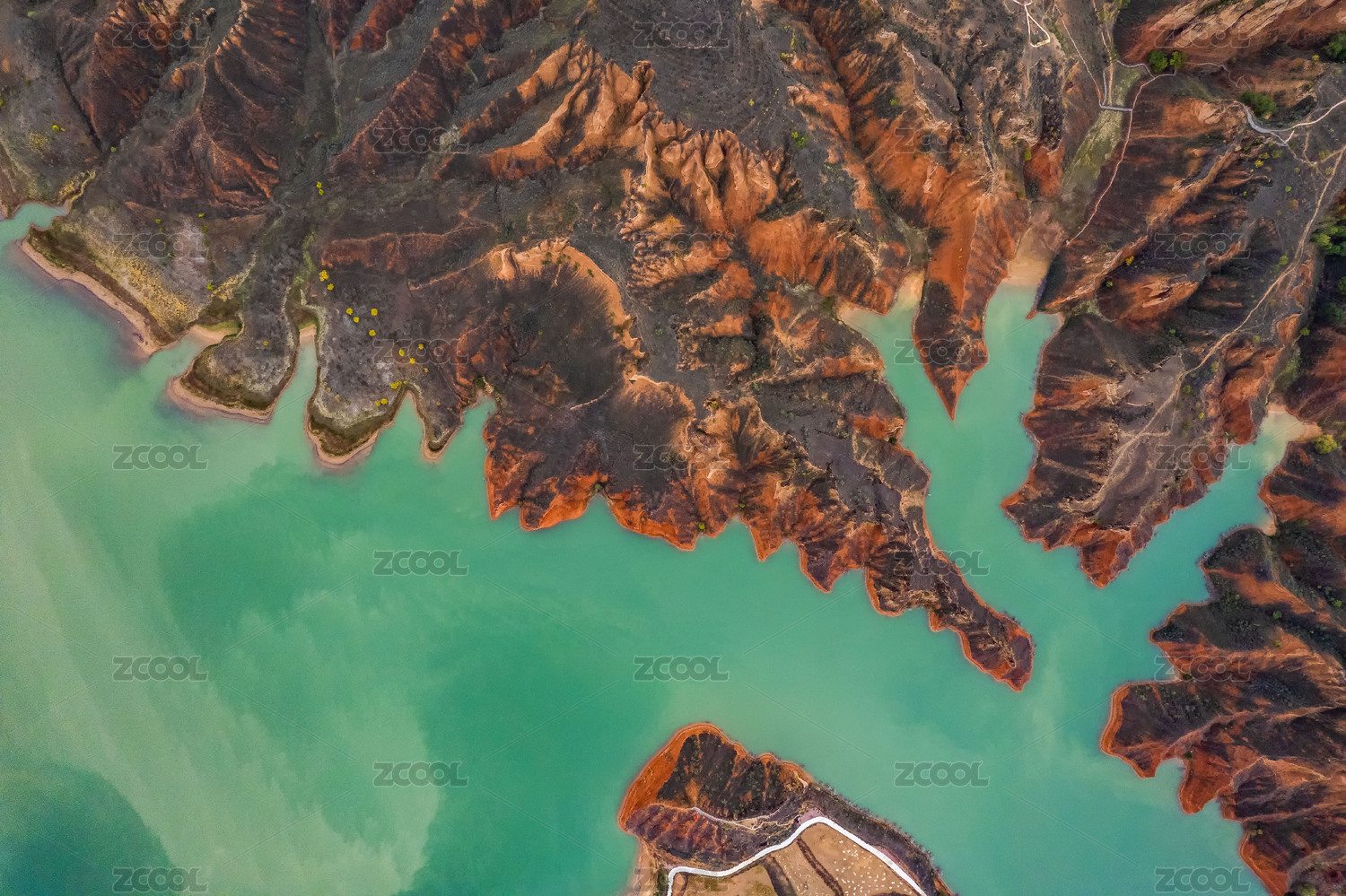 中国陕北黄土高原上千沟万壑的地貌和蜿蜒的黄河航拍图
